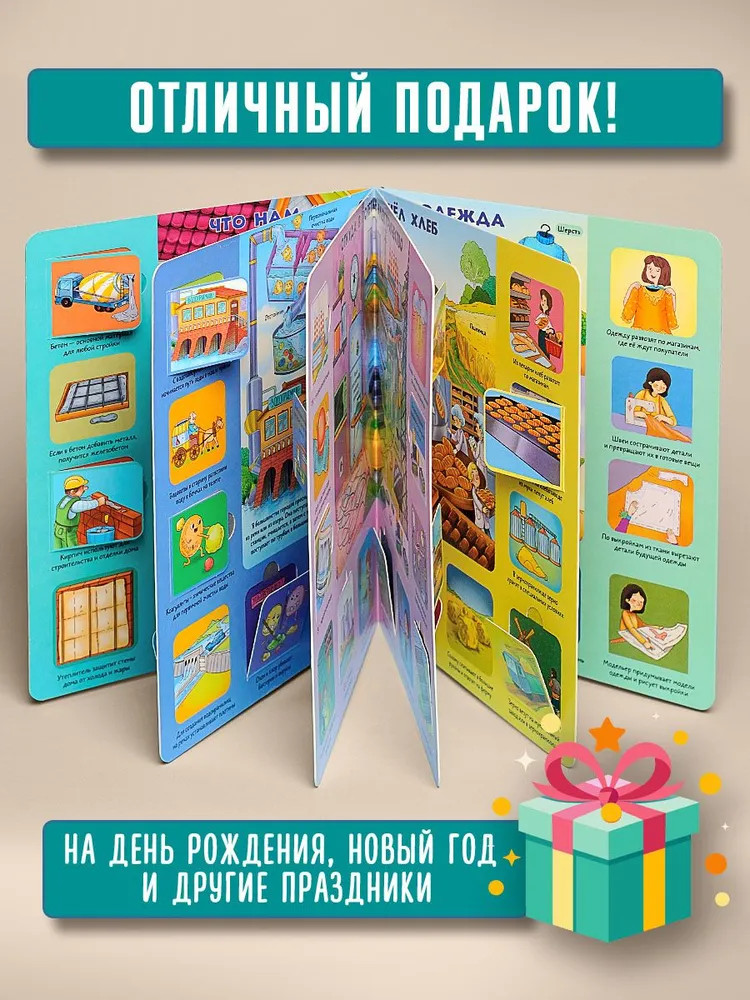 Серия: Книги с окошками Это познавательная мини-энциклопедия для маленьких почемучек, которые задают миллион вопросов об окружающих их вещах. Книжка с окошками расскажет о том, как построить прочный и теплый дом, откуда берется электричество, чем оно полезно и чем опасно. Малыши узнают, сколько труда нужно, чтобы вырастить зерно и испечь хлеб, как и из чего шьют одежду. |