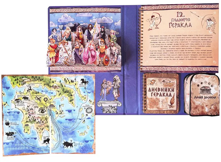Олимпийским богам было предсказано, что в грядущей битве с гигантами им понадобится помощник из числа людей. Боги взрастили героя-смертного, Геракла, который совершил 12 бессмертных подвигов. Эта книга о них. Мифам о подвигах Геракла больше трех тысяч лет, для нас это — сказки, но для древних греков, эллинов, это была реальная история: знатные люди считали себя потомками Геракла, греки считали, что он основал Олимпийские игры и по всей стране использовали длину его шага, как эталон при измерении расстояний. В этой книге мы постарались соединить миф и реальность, чтобы почувствовать дух тех древних времен. В ней есть не только ожившие мифы с движущимися чудовищами и героем, но и предполагаемая карта путешествий Геракла, и хронология подвигов и даже личный дневник, который мог бы вести герой. И есть пантеон богов из 12 олимпийцев: в решающей битве Геракл помог им победить гигантов, спас мир, который помнит его и сегодня. |