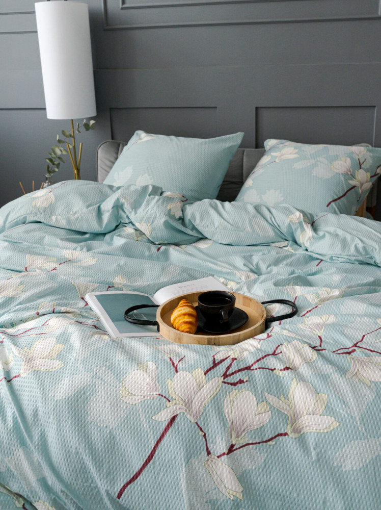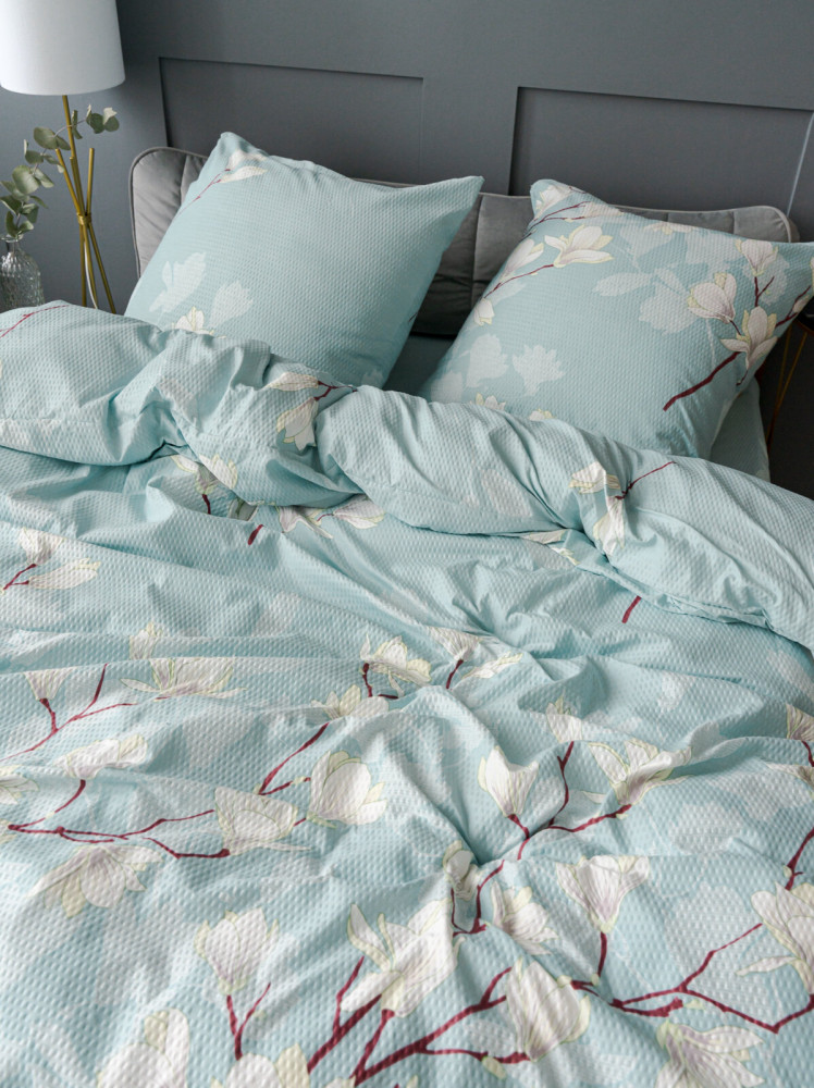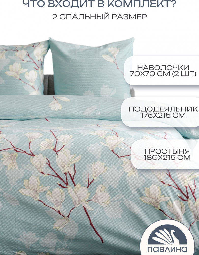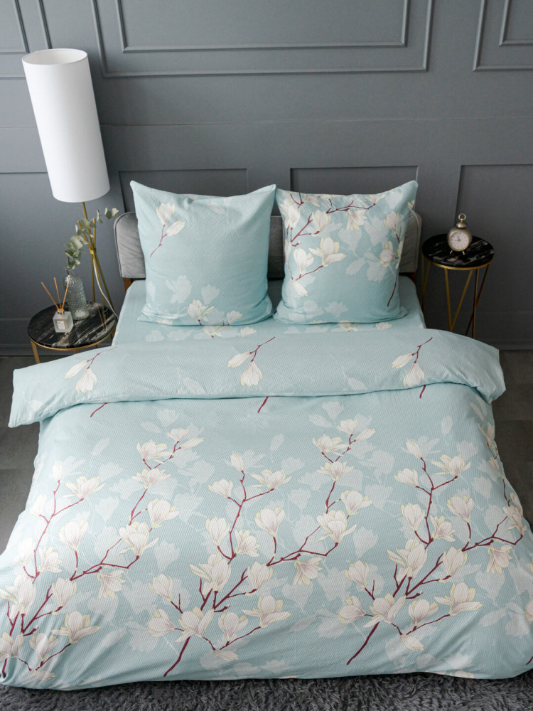 Pavline Комплект постельного белья «Белые цветы-ветки на голубом»