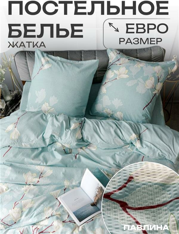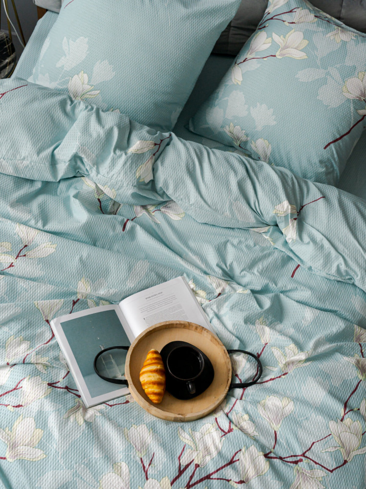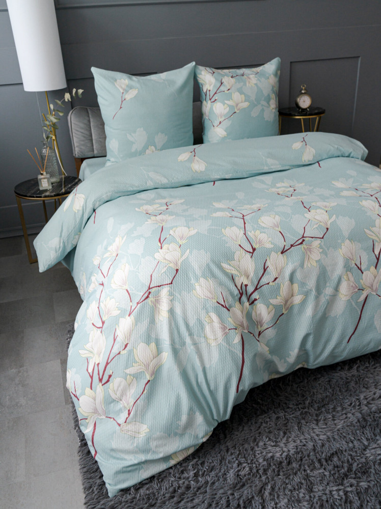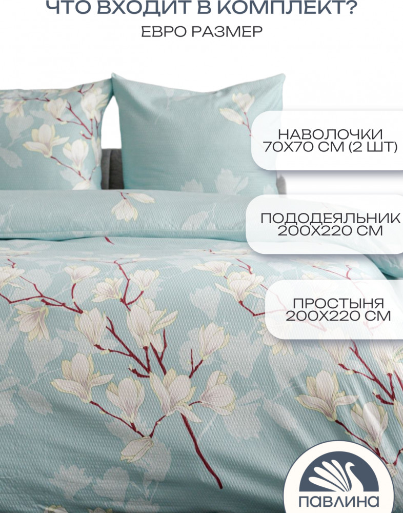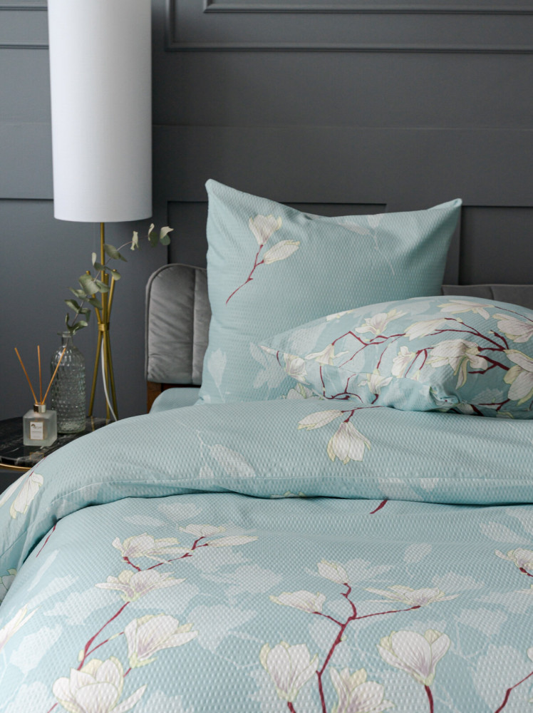 Pavline Комплект постельного белья «Белые цветы-ветки на голубом»