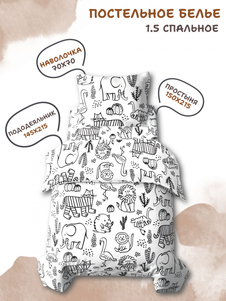 Павлинка Комплект постельного белья «Звери ЧБ»