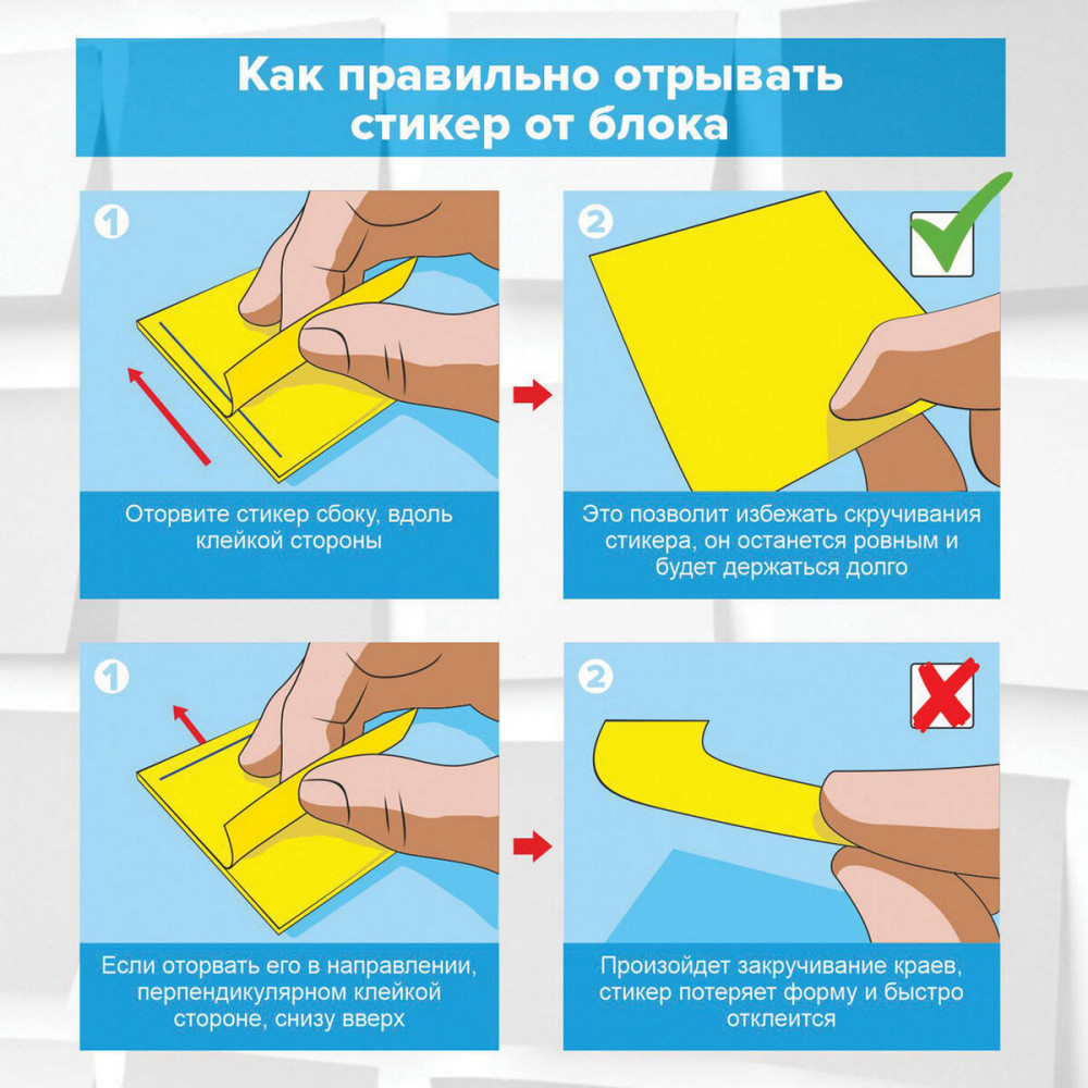 Бумага для заметок с клейким краем Staff рекомендуется для использования в процессе совещаний, обучения, мозговых штурмов. Идеально подойдет для использования как в офисе, так и дома. Стикеры желтого пастельного цвета в форме квадрата 76×76 мм состоят из 400 листов. Плотность бумаги составляет 65 г/м2. Клейкий слой — 22 Н/м. Легко клеятся к любой поверхности. Не оставляют следов. Упакованы в полиэтиленовую пленку. |
