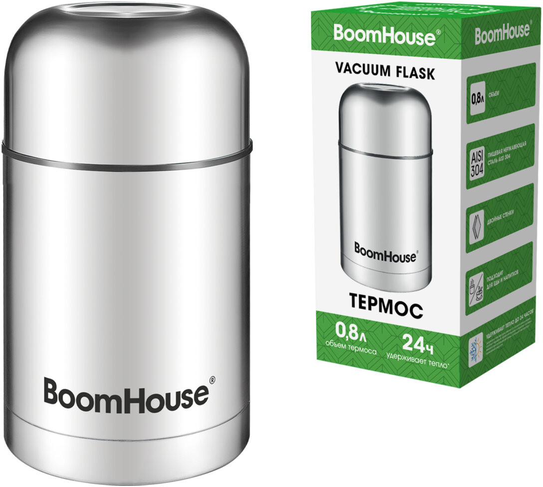 Термос BoomHouse — практичное решение для сохранения температуры еды и напитков до 24 часов! Двойные стенки из нержавеющей стали SUS304 надёжно удерживают тепло, а широкое горло удобно для первых и вторых блюд. Незаменим в поездках, на работе и отдыхе. |