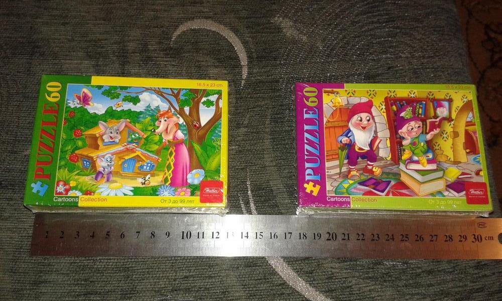 Пазлы отличные, яркие, плотные. Размер одного пазла 3см. Ребенок 3х лет без проблем собрал. Рекомендую.