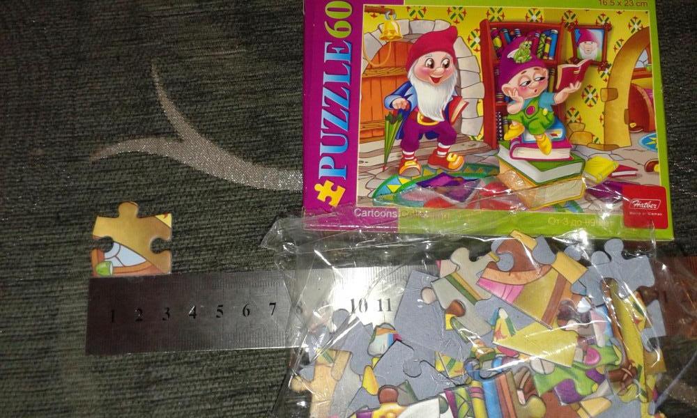 Пазл мелкий, картинка для 3 летнего ребенка пестрая. Качество хорошее, плотный картон.