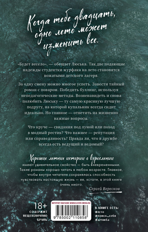 Серия: #trendbooks Эта книга — про предрассветные летние приключения, шальную юность, море и первую любовь. «Будет весело», — обещает Люська. Так две подающие надежды студентки журфака на лето становятся вожатыми детского лагеря. За одну смену можно многое успеть. Завести тайный роман с поваром. Победить буллинг в лагере, используя непедагогические методы. Возненавидеть и снова полюбить Люську — ту самую красивую подругу, на которой купальник всегда сидит лучше. Но главное ответить на жизненно важные вопросы. Что круче — свидания под луной или поход в модный рестик? Что важнее — репутация или справедливость? Правда ли, что в дружбе всегда есть ведущий и ведомый? Когда тебе двадцать, одно лето может изменить все. |