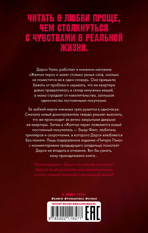 Серия: #trendbooks Дарси Уэллс работает в книжном магазине «Желтое перо» и знает столько умных слов, сколько не поместится ни в один словарь. Она привыкла бежать от проблем и скрывать, что ее квартира давно превратилась в склад ненужных вещей, а мама страдает от накопительства, заглушая одиночество постоянными покупками. |