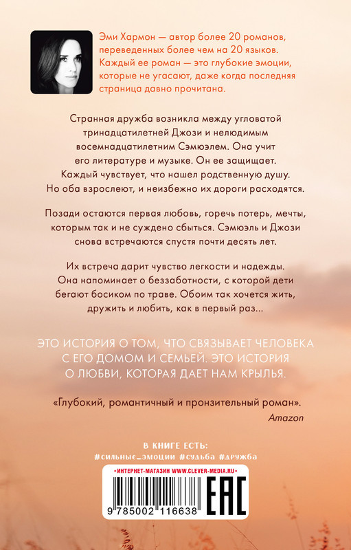Серия: #trendbooks mini Новый формат популярной серии — #trendbooks mini! Мировые бестселлеры известных авторов теперь в компактном формате: их легко и удобно взять с собой и наслаждаться любимыми книгами где угодно! || Нежная и бесконечно трогательная история, пропитанная покоем и тишиной крошечного городка, расскажет о первой любви, которая взрослеет вместе с любящими, о кровных узах и духовном родстве, об искусстве, которое пробуждает в душе лучшее. Странная дружба возникла между угловатой тринадцатилетней Джози и нелюдимым восемнадцатилетним Сэмюэлем. Она учит его литературе и музыке. Он ее защищает. Каждый чувствует, что нашел родственную душу. Но оба взрослеют, и неизбежно их дороги расходятся. Позади остаются первая любовь, горечь потерь, мечты, которым так и не суждено сбыться. Сэмюэль и Джози снова встречаются спустя почти десять лет. Их встреча дарит чувство легкости и надежды. Она напоминает о беззаботности, с которой дети бегают босиком по траве. Обоим так хочется жить, дружить и любить, как в первый раз... |