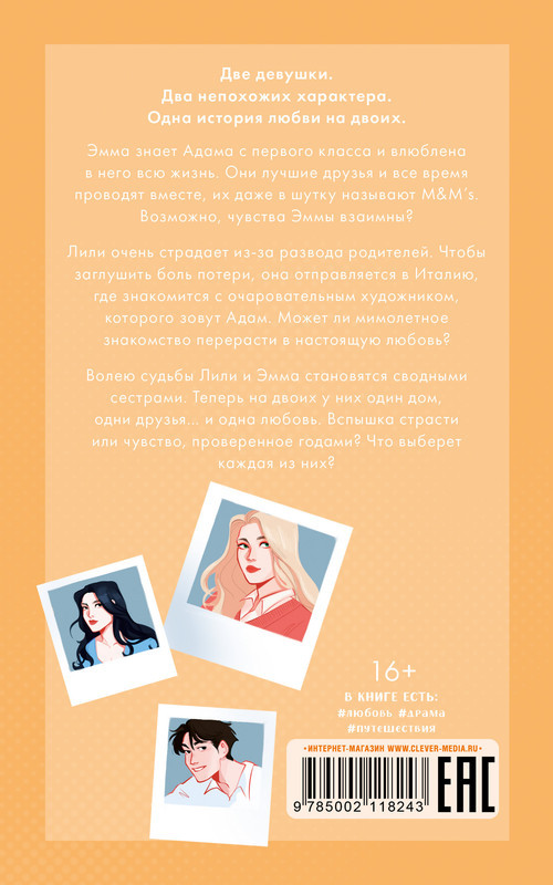 Эмма знает Адама с первого класса и влюблена в него всю жизнь. Они лучшие друзья и все время проводят вместе, их даже в шутку называют M&M’s. Возможно, чувства Эммы взаимны? Лили очень страдает из‑за развода родителей. Чтобы заглушить боль потери, она отправляется в Италию, где знакомится с очаровательным художником, которого зовут Адам. Может ли мимолетное знакомство перерасти в настоящую любовь? Волею судьбы Лили и Эмма становятся сводными сестрами. Теперь на двоих у них один дом, одни друзья... и одна любовь. Вспышка страсти или чувство, проверенное годами? Что выберет каждая из них?