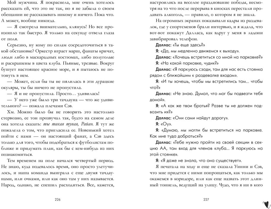 Мне, Далласу Колтеру, парню с плохой репутацией нужна хорошая девочка. Она, Райан Уинтерс, идеально подходит на роль фиктивной подружки. Ответственная. Саркастичная. Умная. Совершенство во всем... кроме одного. Она — бывшая девушка моего товарища по футбольной команде. Играть с ней опаснее, чем играть в футбол. Но что, если на кону решающий матч, а между нами настоящая любовь?