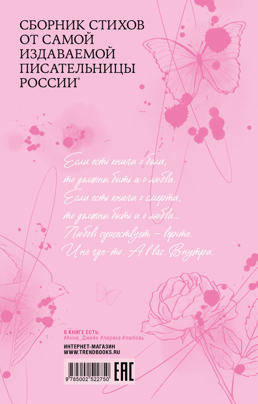 Сборник «Анна Джейн. Стихи» редакции Trendbooks — настоящий подарок для тех, кто ценит поэзию, любит чтение, кому нравится романтическая литература.