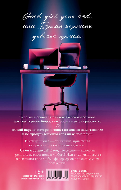 Серия: #trendbooks «Хорошая девочка» Кати Саммер и Ксюши Левиной — подарочное издание с чувственными иллюстрациями Наили Бикмухаметовой (iroironeri) и потрясающей рисованной обложкой. Популярные авторы Trendbooks создали головокружительную романтическую историю с непредсказуемым финалом! |