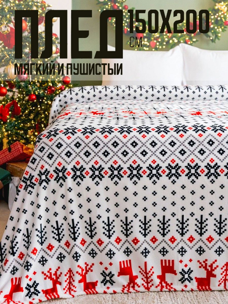 Плед «Олени Сканди красно-черные» | Аэро Софт | Pavline