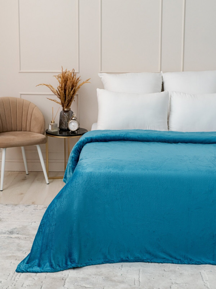 Очень хороший плед. Кажется невесомым, что немного непривычно, но он очень тёплый и приятный к телу.