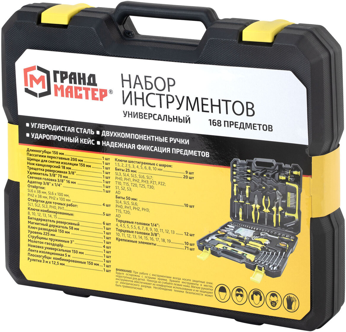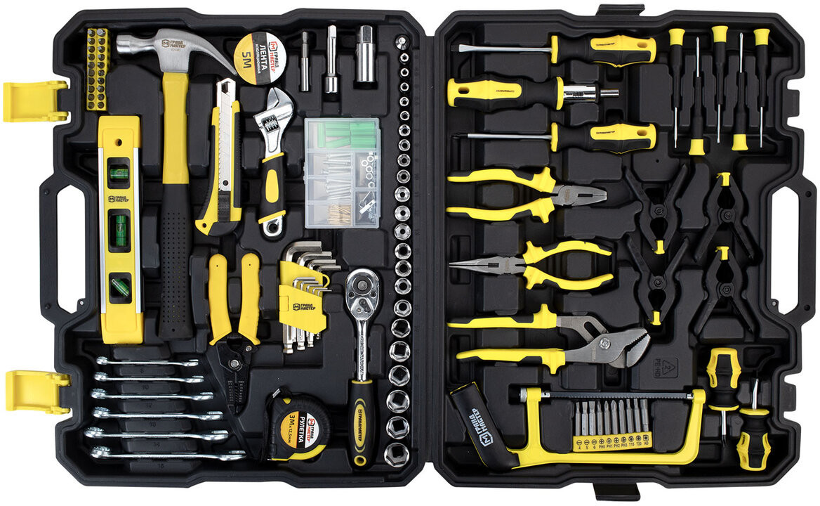 Универсальный набор инструментов Грандмастер станет незаменимым помощником как в быту, так и в профессиональной деятельности. Состав набора позволит выполнять задачи различной сложности – от мелкого ремонта до профессионального монтажа.