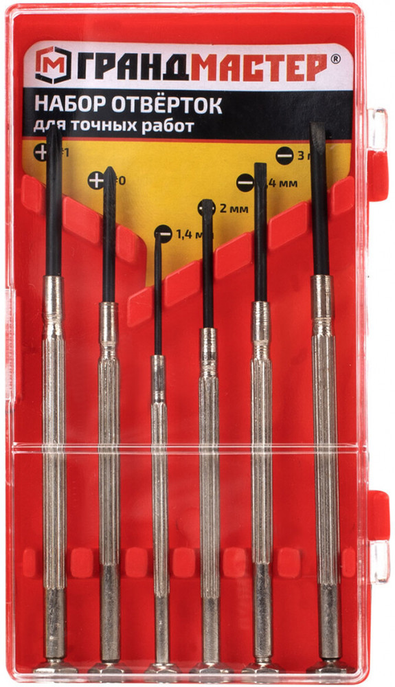 • отвёртки для точных работ (SL: 1.4x22, 2x24, 2.4x25, 3x28; PH: 0x25, 1x28) — 6 шт.;