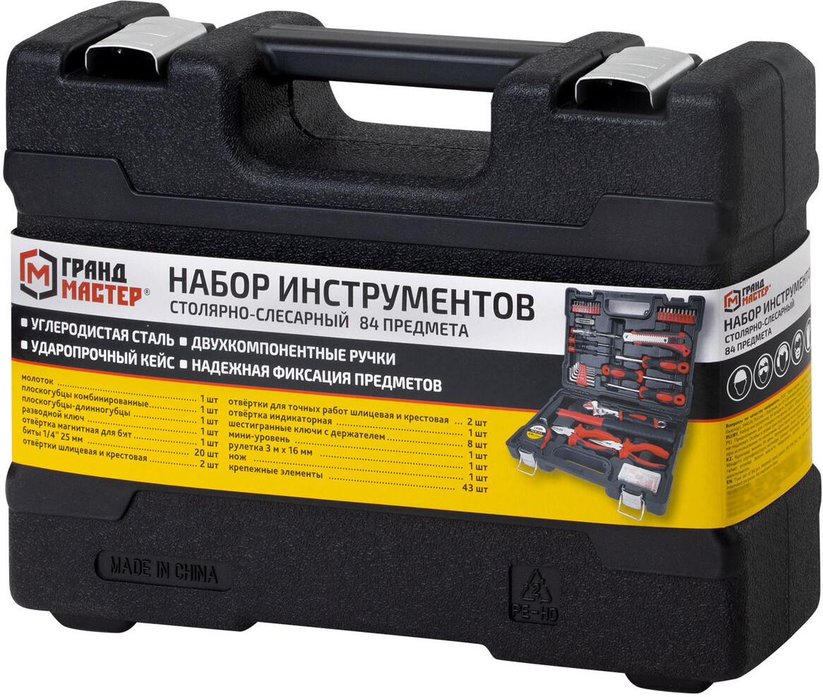 Столярно-слесарный набор включает в себя необходимые инструменты для использования в быту. Состав набора позволит выполнить мелкий ремонт дома и на даче, а также пригодится для ремонта колесной и бытовой техники.