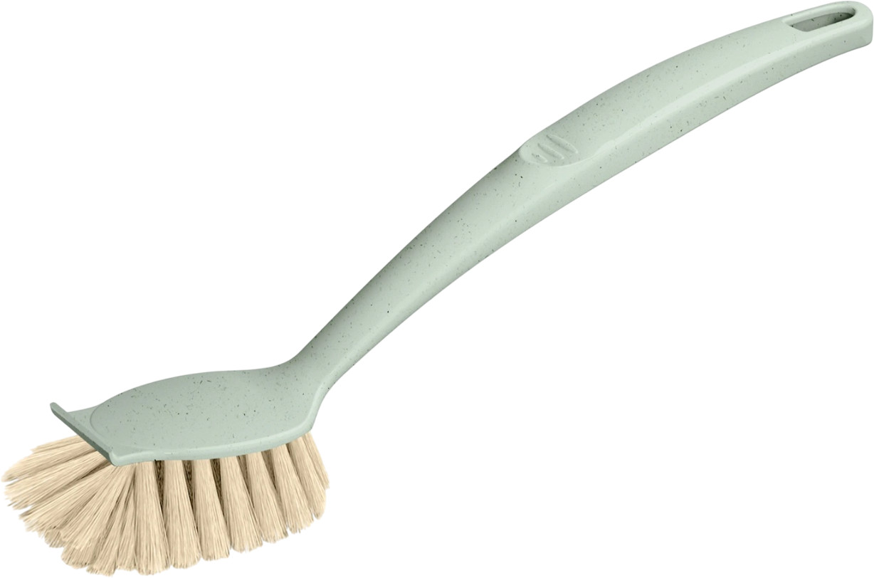 Щетка имеет особое круговое расположение щетины и идеальна для мытья посуды. Подходит для очистки кастрюль, сковородок, тарелок, а также стаканов и бутылок. Удобная эргономичная ручка имеет отверстие для размещения на крючке. Ворс щетки прочный и не деформируется при высоких температурах воды. На головке щетки расположен удлинённый скребок для снятия особо стойких загрязнений. Производится из безопасного пластика, не содержит бисфенола А. |