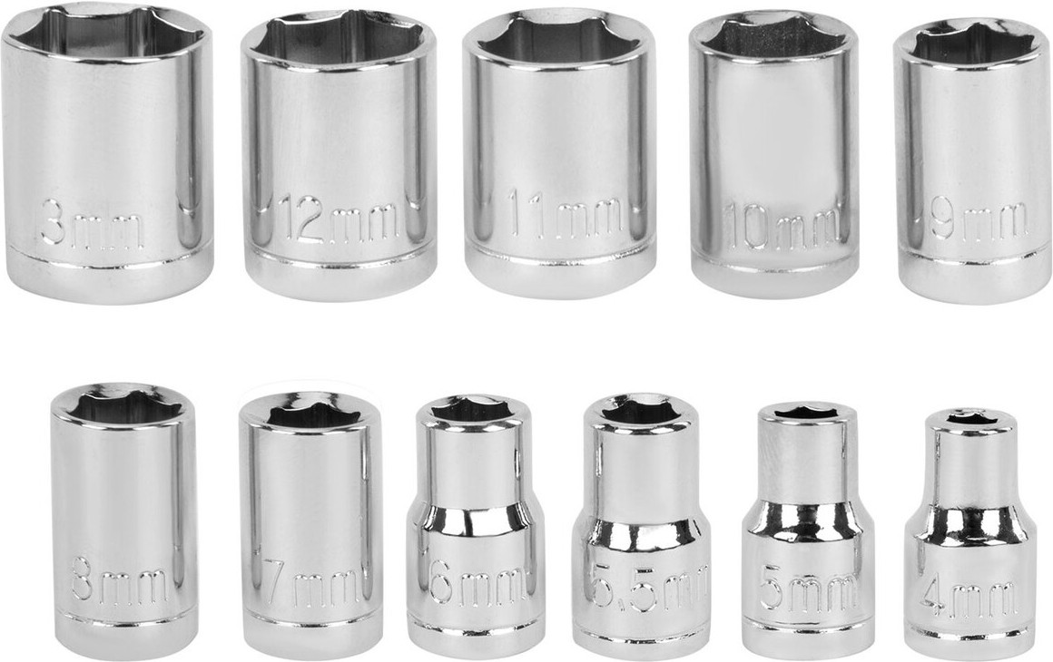 • торцевые головки 1/4" 20 мм (4, 5, 5.5, 6, 7, 8, 9, 10, 11, 12, 13) — 11 шт.