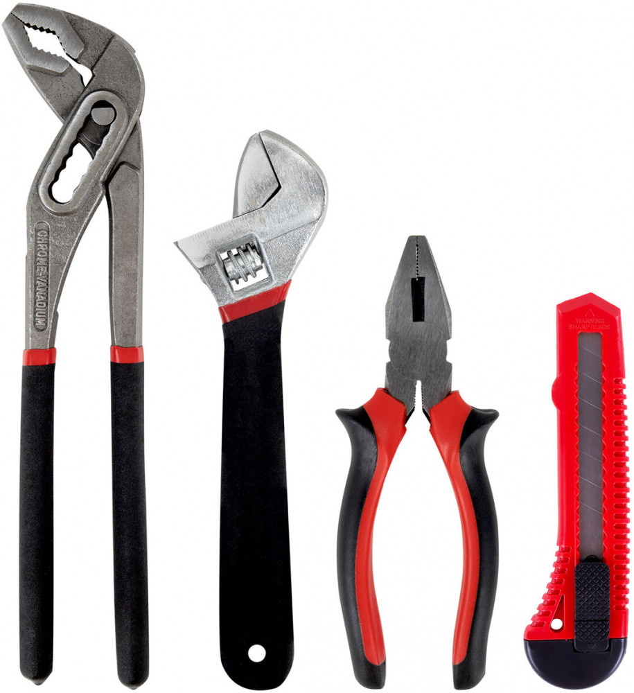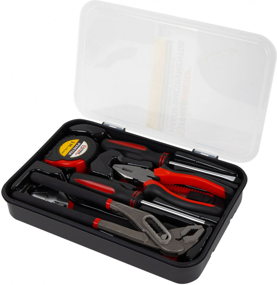 Инструменты изготовлены из закалённой углеродистой стали. Рукоятки выполнены из нескользящего ПВХ для максимального комфорта и безопасности во время использования. Набор предназначен для столярно-слесарных работ при осуществлении мелкого ремонта в быту.
