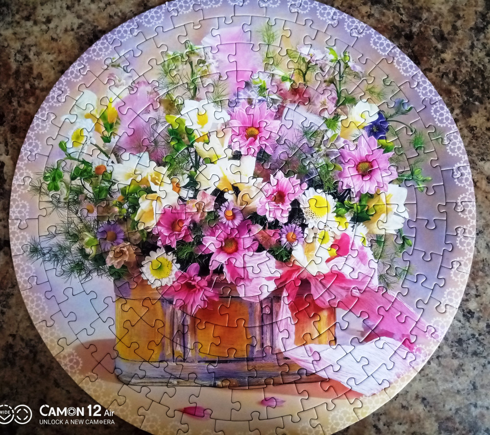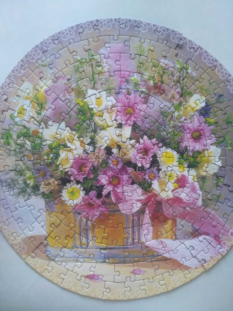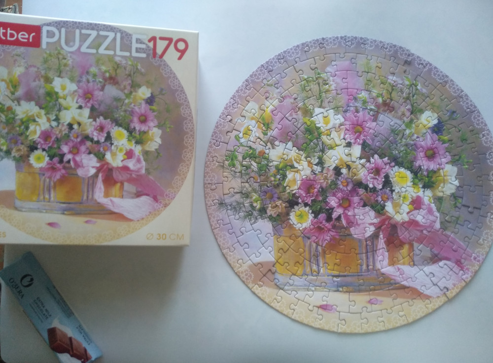 Попался удачный вариант пазла. Нежный, не тусклый, но и не агрессивный цвет, сами детальки не маленькие. Пазл понравился . Некоторые детальки необычной формы,так центра пазла собирается кружочком (спойлер). Фото прикрепляю, все цвета соответствуют, стиль для любителей винтажа, Прованса.