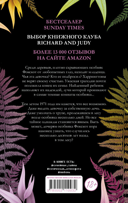 Серия: #trendbooks «Стеклянный дом» Евы Чейз — международный бестселлер. Три женщины. Прошлое и настоящее. Секрет, который все изменит. Среди деревьев, плотно скрывающих особняк Фокскот от любопытных глаз, находят младенца. Чья эта девочка? Кто ее подбросил? Харрингтоны не верят своему счастью. Ужасная трагедия почти положила конец их семье. Найденный ребенок наполняет их надеждой, лучи которой проникают в самые темные комнаты особняка... Тем летом 1971 года им кажется, что все возможно. Даже выдать девочку за собственную дочь. Даже умолчать о трупе, пролежавшем в лесу возле особняка несколько дней. Но все тайное однажды становится явным. Быть может, дочерям особняка Фокскот пора наконец узнать, что случилось несколько десятков лет назад в том лесу? В книге #семейные_тайны #готический_роман #любовь. |