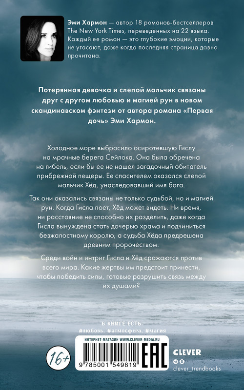 Захватывающее историческое фэнтези от автора международных бестселлеров Эми Хармон. Вторая часть дилогии. || Потерянная девочка и слепой мальчик связаны друг с другом любовью и магией рун в новом скандинавском фэнтези. Холодное море выбросило осиротевшую Гислу на мрачные берега Сейлока. Она была обречена на гибель, если бы ее не нашел загадочный обитатель прибрежной пещеры. Ее спасителем оказался слепой мальчик Хёд, унаследовавший имя бога. Так они оказались связаны не только судьбой, но и магией рун. Когда Гисла поет, Хёд может видеть. Ни время, ни расстояние не способно их разделить, даже когда Гисла вынуждена стать дочерью храма и подчиниться безжалостному королю, а судьба Хёда предрешена древним пророчеством. Среди войн и интриг Гисла и Хёд сражаются против всего мира. Какие жертвы им предстоит принести, чтобы победить силы, готовые разрушить связь между их душами.