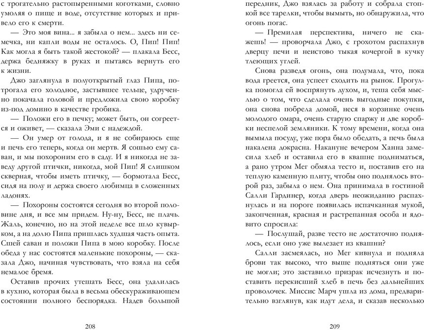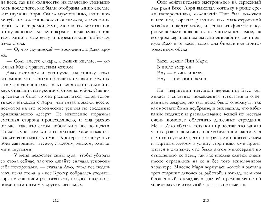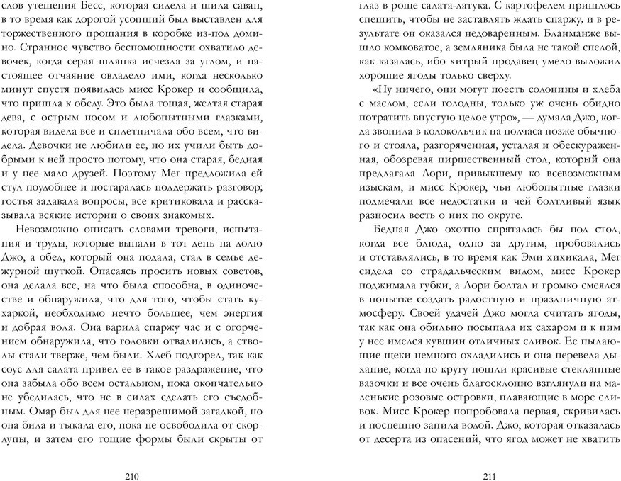 Семейная сага повествует о судьбах четырех сестер Марч: добросердечной красавицы Мег, «сорванца в юбке» Джо, кроткой и нежной Бесс и талантливой фантазерки Эми. И конечно, об их невероятной матери, каждая фраза которой стала цитатой и мудрым напутствием для всех юных девушек.