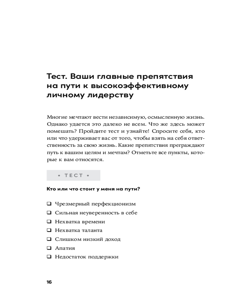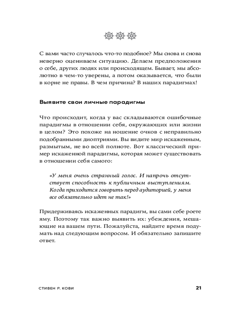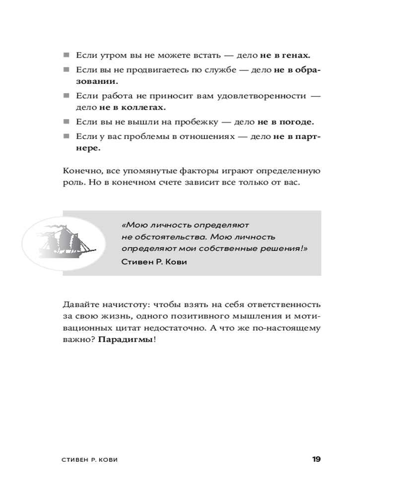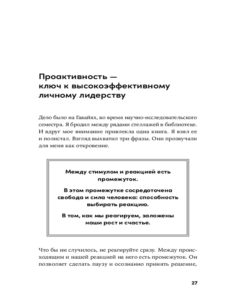 Если вы хотите жить независимой и осмысленной жизнью в мире, полном сложностей, суеты и проблем, вам необходимо научиться личному лидерству: сделать так, чтобы вами управляли не обстоятельства, а ваши собственные решения. Но как этого добиться? Как минимизировать влияние чужих планов, следовать внутреннему голосу и воплощать мечты? Ответы вы найдете в книге Стивена Р. Кови, автора мирового бестселлера «Семь навыков высокоэффективных людей». Сформулированные им принципы помогли миллионам читателей обрести личное счастье и профессиональный успех. Тесты, чек-листы, опросники, упражнения и советы придадут вам смелости проложить свой курс, добиваться целей и жить той жизнью, о которой вы всегда мечтали. |