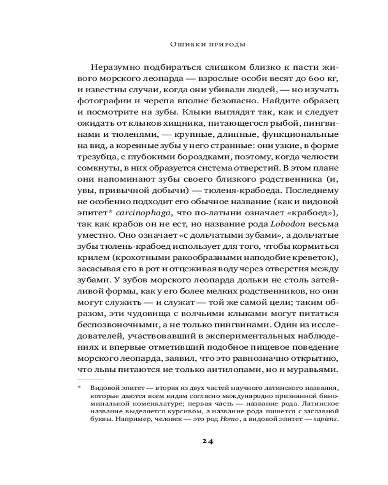 💳 Оплатить за товар можно при получении 🇰🇿 Есть бесплатная доставка по Казахстану 🎁 Копите бонусы с каждой покупки В ходе эволюции виды идеально приспосабливаются к условиям окружающей среды, не правда ли? Что ж, иногда бывает и не так. Но подумайте вот о чем: у слона не вырастает седьмой набор зубов, хотя после того, как сотрется шестой набор, он будет обречен на голодную смерть; птицы, в чьи гнезда подбрасывает яйца кукушка, не способны отличить монстра-переростка в гнезде от собственного птенца; а киты хотя и стали полностью водными млекопитающими миллионы лет назад, до сих пор не научились дышать под водой. |