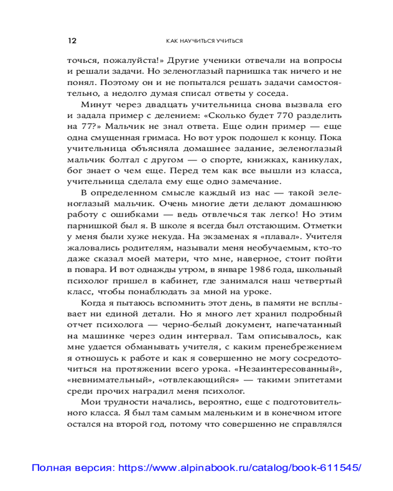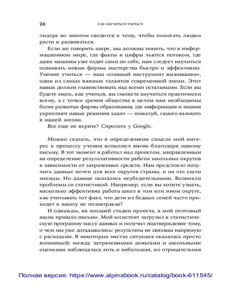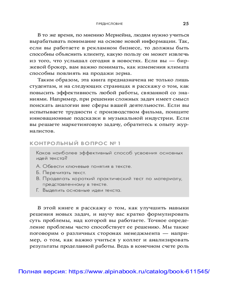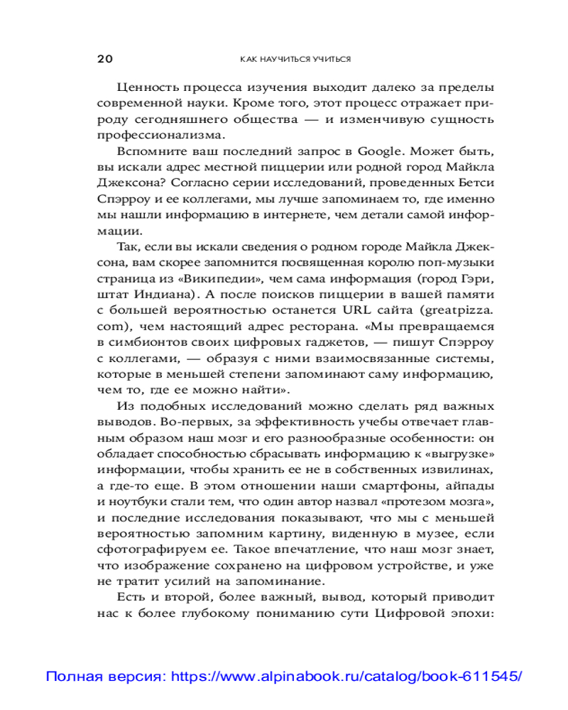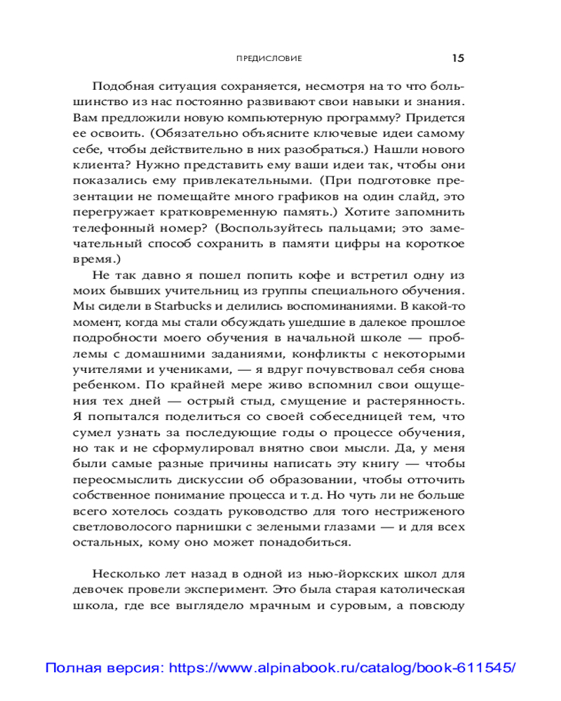 Серия: Альпина. Саморазвитие До недавнего времени процесс обучения сводился главным образом к запоминанию информации: необходимо было зубрить даты, факты, события и в нужный момент применять эти знания. Но в современном мире, где практически любую информацию можно получить за считанные минуты с помощью гаджетов, а искусственный интеллект проникает во все новые сферы жизни, простого запоминания уже недостаточно. |