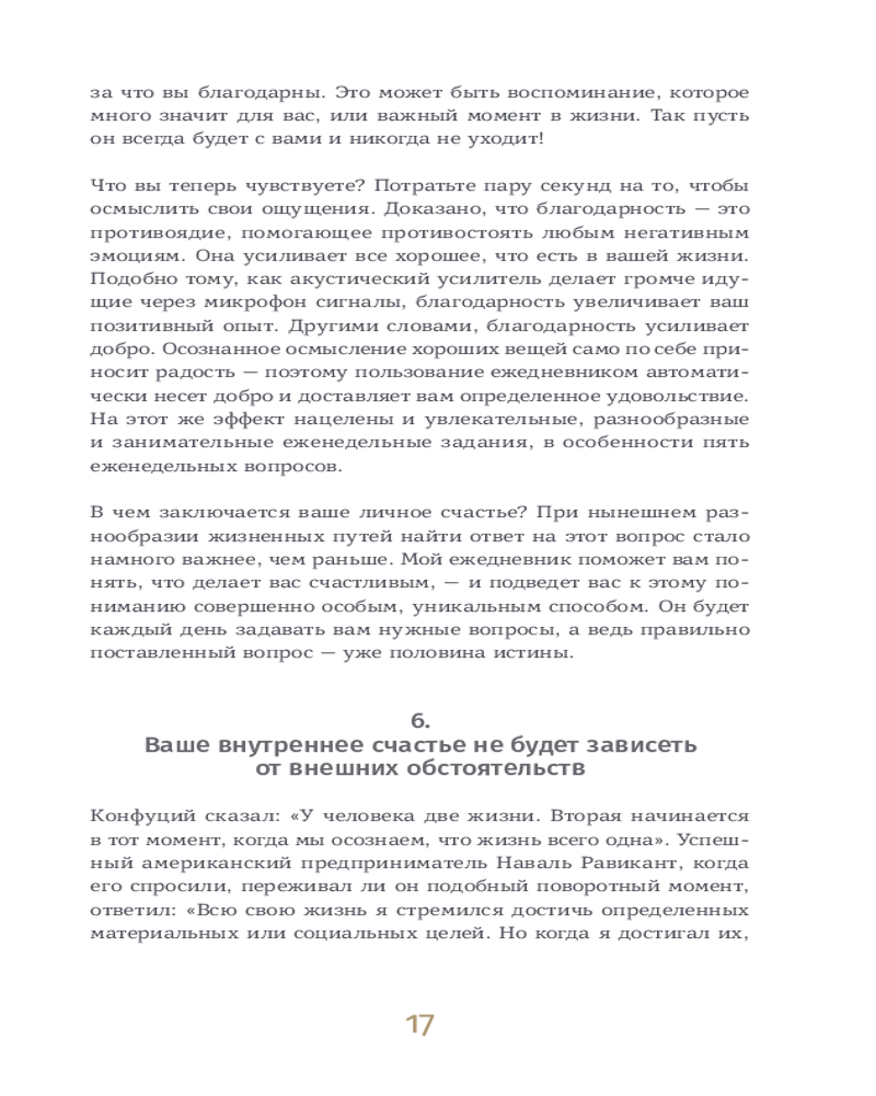 Серия: Ежедневники «6 минут» Счастье не является результатом везения или случайного стечения обстоятельств. Стать счастливым помогают правильные установки и образ мыслей. 3 минуты утром и 3 минуты вечером — столько времени займет выработка полезных привычек, которые сделают вашу жизнь осознаннее, гармоничнее, а значит — счастливее. |