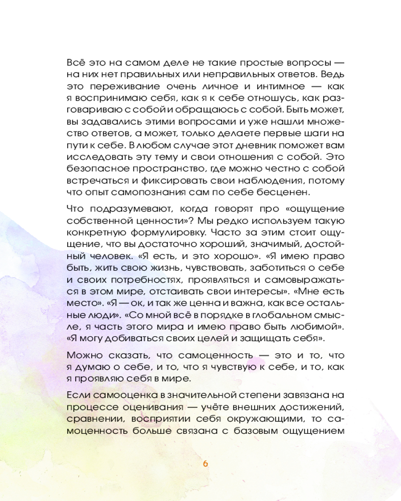 Представьте, что вы плывете в океане жизни. Иногда волны бьют так сильно, что берег теряется из виду. Иногда туман сомнений и чужих оценок скрывает ваш путь. Но внутри вас есть маяк самоценности — тот самый свет, который поможет пройти через самые темные ночи. И чем ярче он горит, тем увереннее вы держите курс к себе настоящей. Этот дневник — карта, компас и попутный ветер в вашем путешествии. Его автор Юлия Даниленко — практикующий психолог со стажем больше 10 лет, иллюстратор и автор блога «рисуя психологию». Юлия помогает налаживать теплые отношения с собой с помощью принципов гуманистического подхода, методов холистической арт-терапии, когнитивно-поведенческой и гештальт-терапии. |