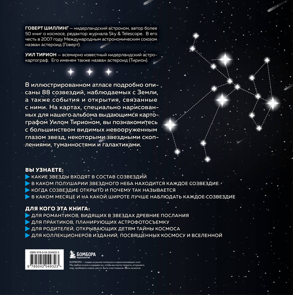 Серия: Подарочные издания. Миссия «Космос» Звёздный гид от легендарных авторов: писателя-астронома Говерта Шиллинга и картографа Уила Тириона — создателя самых точных звёздных карт XX века. Яркие, чёткие иллюстрации и продуманная структура позволяют легко ориентироваться среди 88 созвездий. Лаконичные описания и интересные факты о событиях, происходивших в зоне каждого созвездия, пробуждают истинное любопытство и интерес к исследованию темы космоса. |