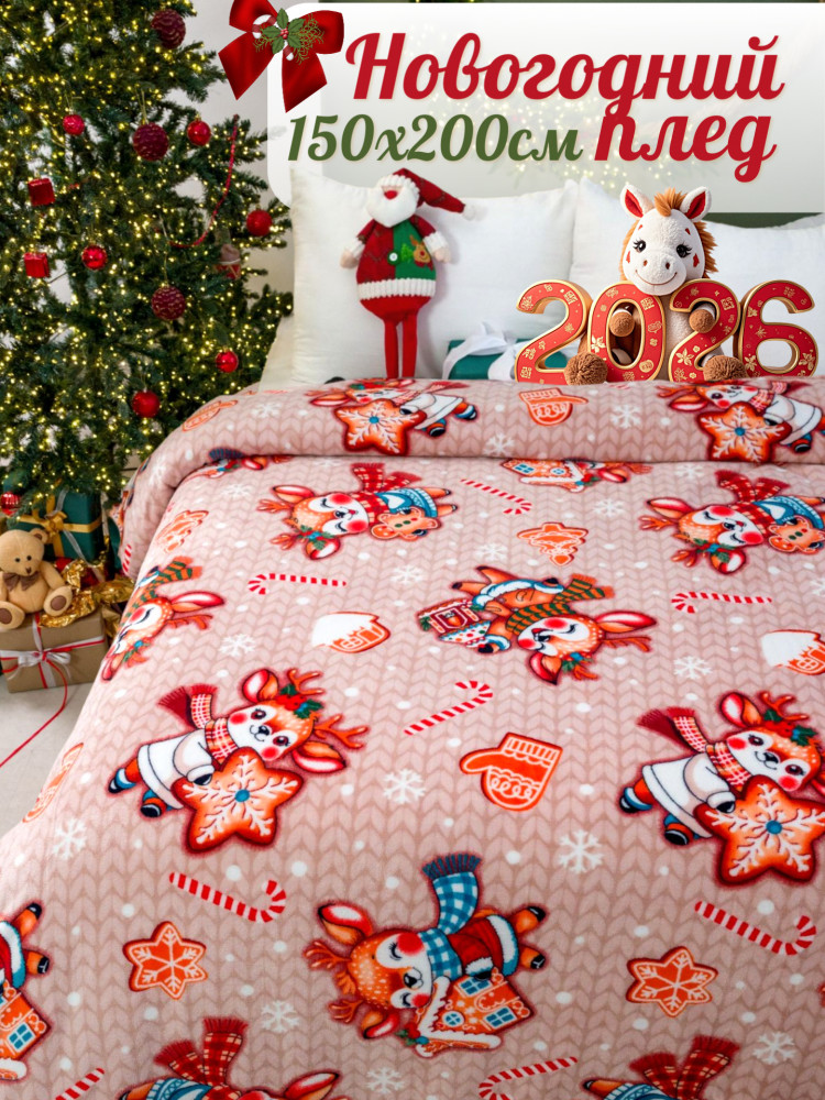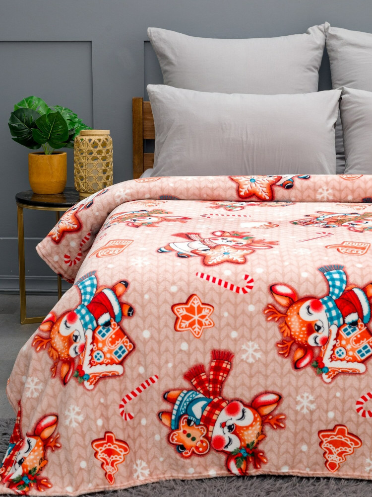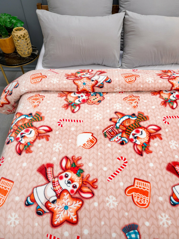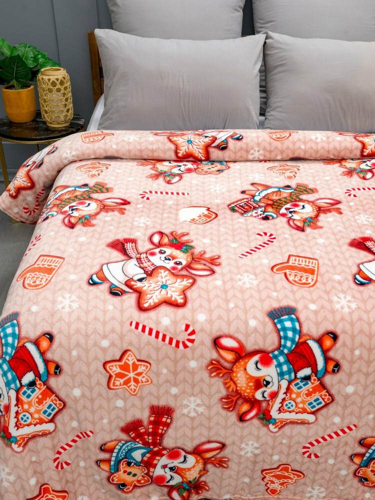 Покрывало-плед трикотажное ворсовое «Оленята НГ» | Pavline
