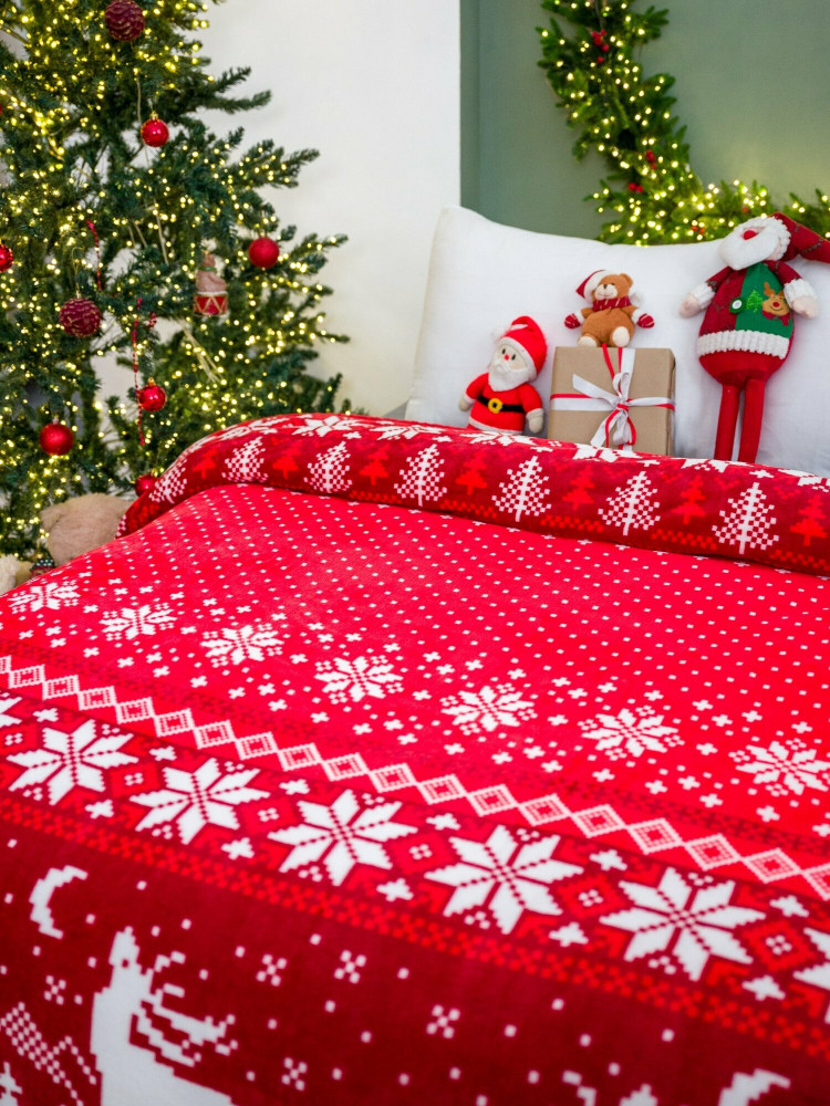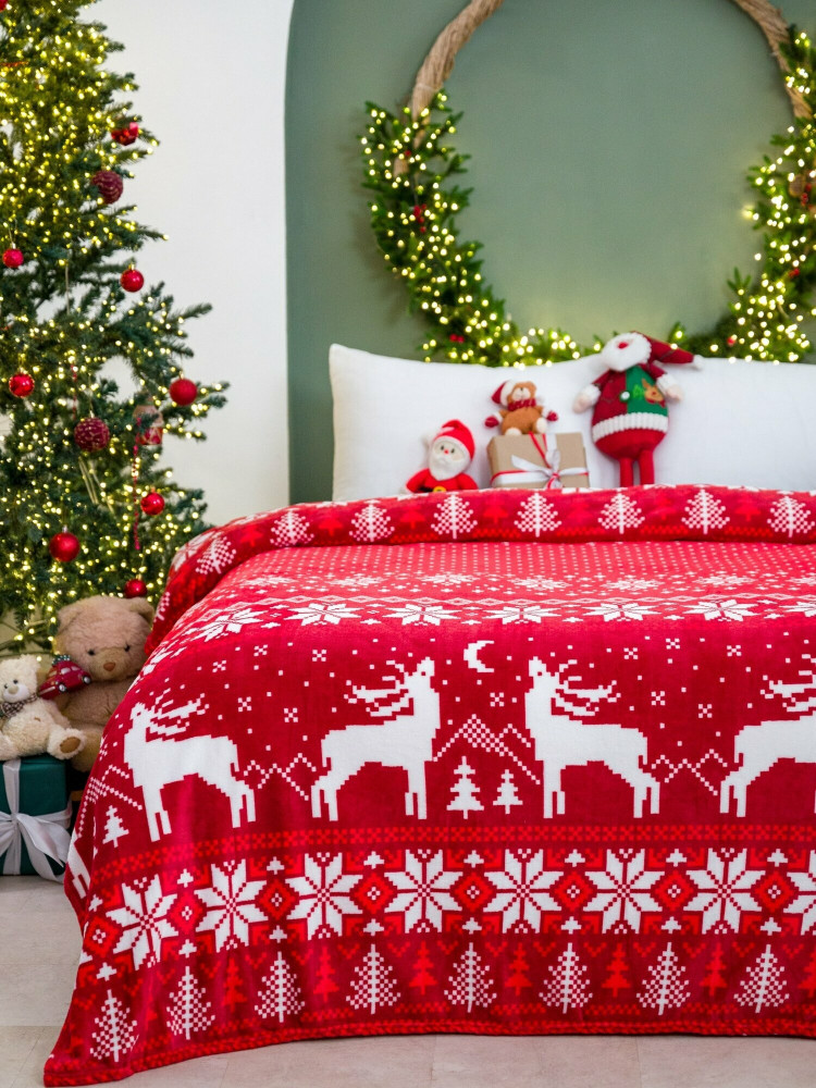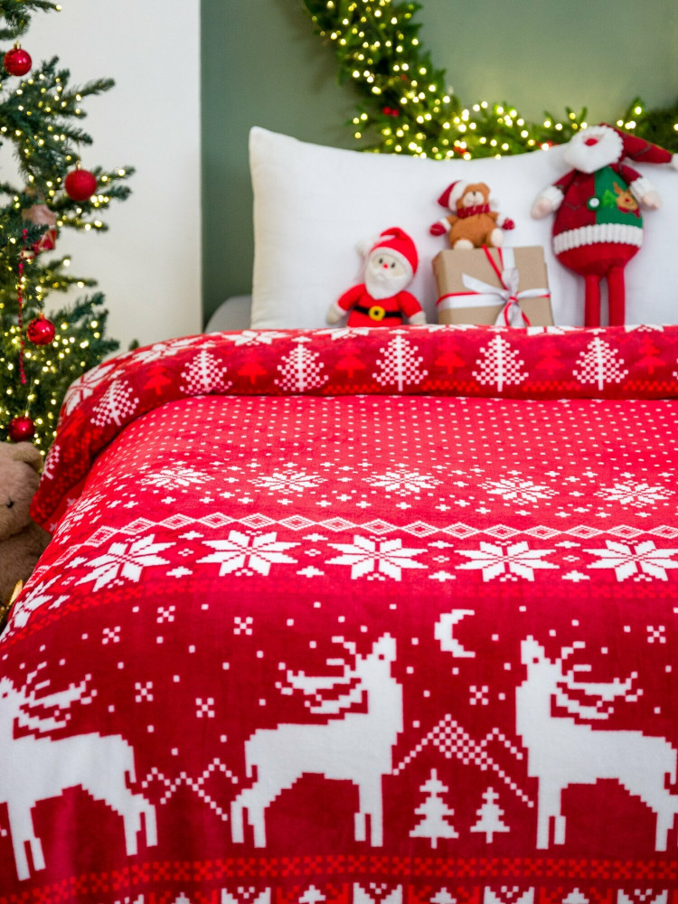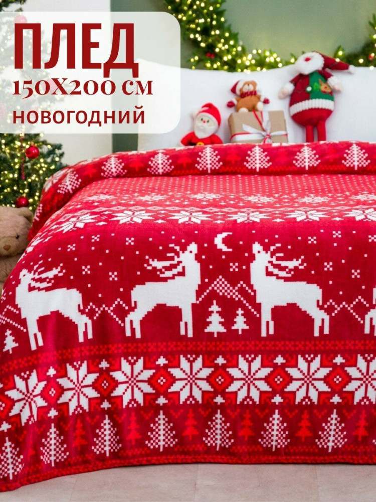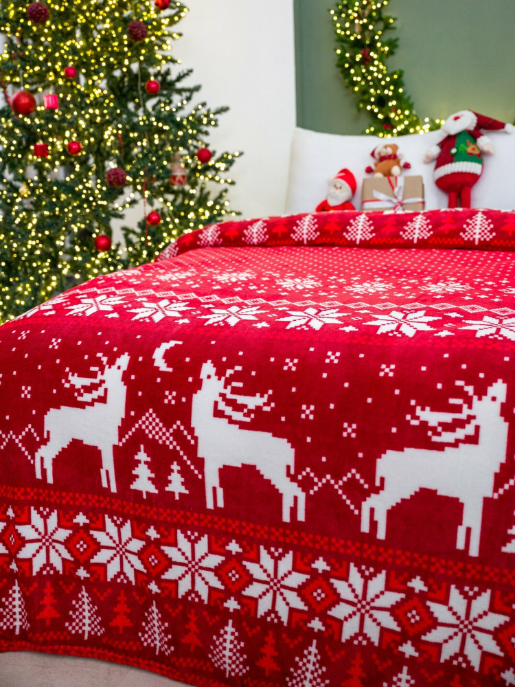 Покрывало-плед трикотажное ворсовое «Олени красные НГ» | Pavline