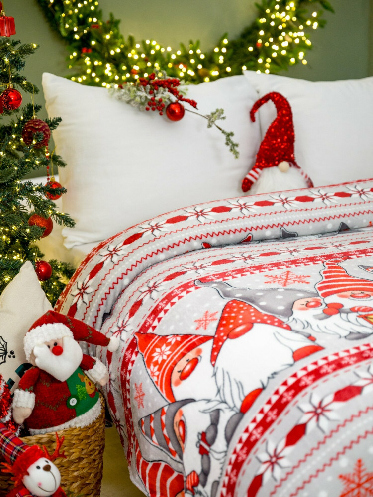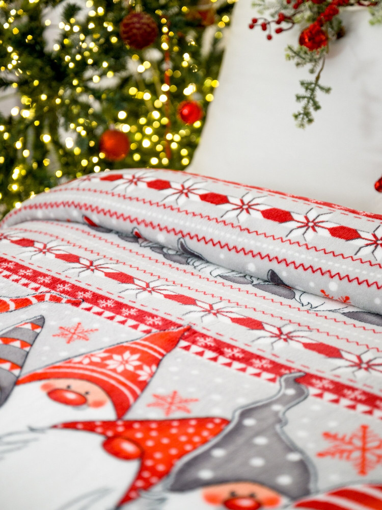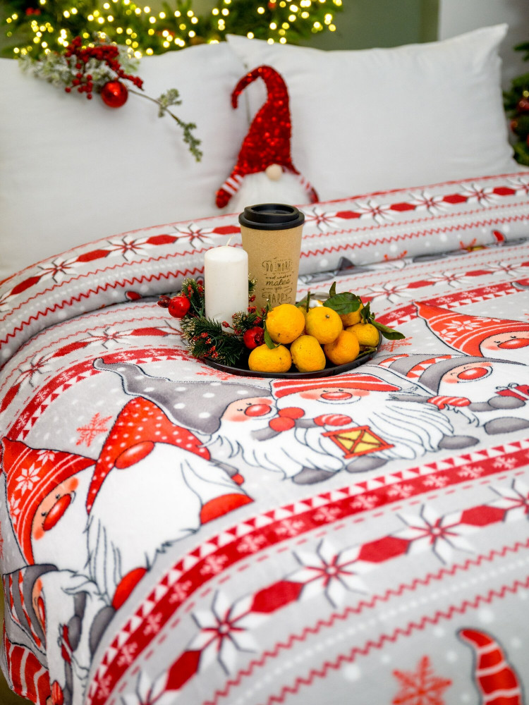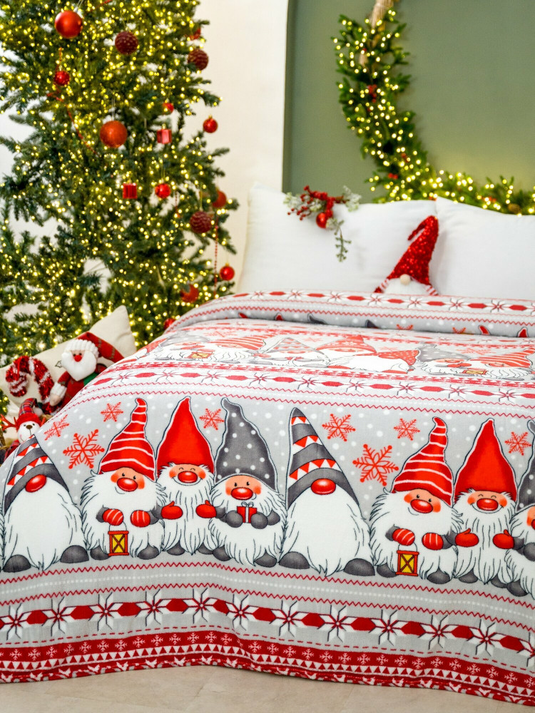 Покрывало-плед трикотажное ворсовое «Гномы НГ полоса» | Pavline