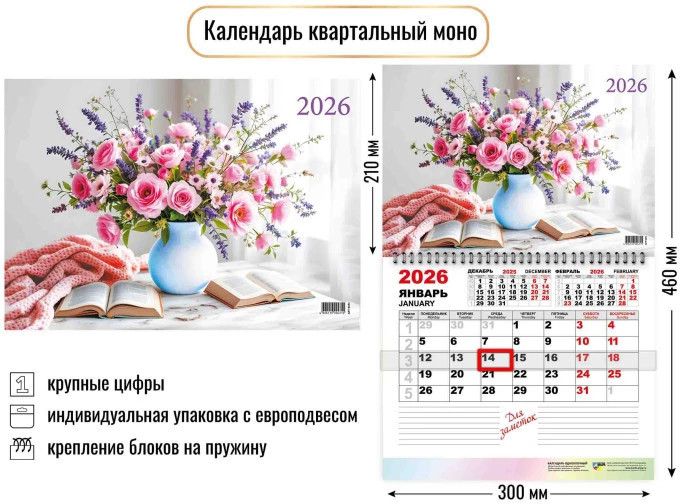 Календарь на 2026 год от Издательской Группы «Квадра» — это сочетание стиля, качества и вдохновения на каждый день. Современный дизайн, яркие иллюстрации и продуманная структура делают его не только удобным инструментом планирования, но и стильным элементом интерьера. Идеально подходит для дома, офиса или в подарок тем, кто ценит эстетику и функциональность. |