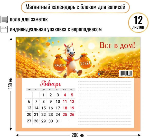 Календарь с блоком для записей на 2026 год «Символ года. Все в дом»новинка