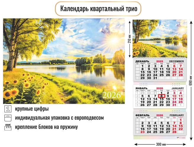 Календарь трио на 2026 год «Природа Солнечный пейзаж»новинка