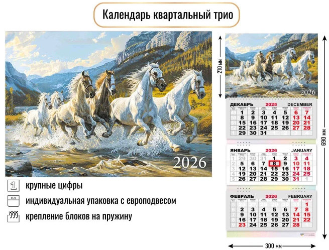 Календарь трио на 2026 год «Символ года. Табун лошадей»новинка