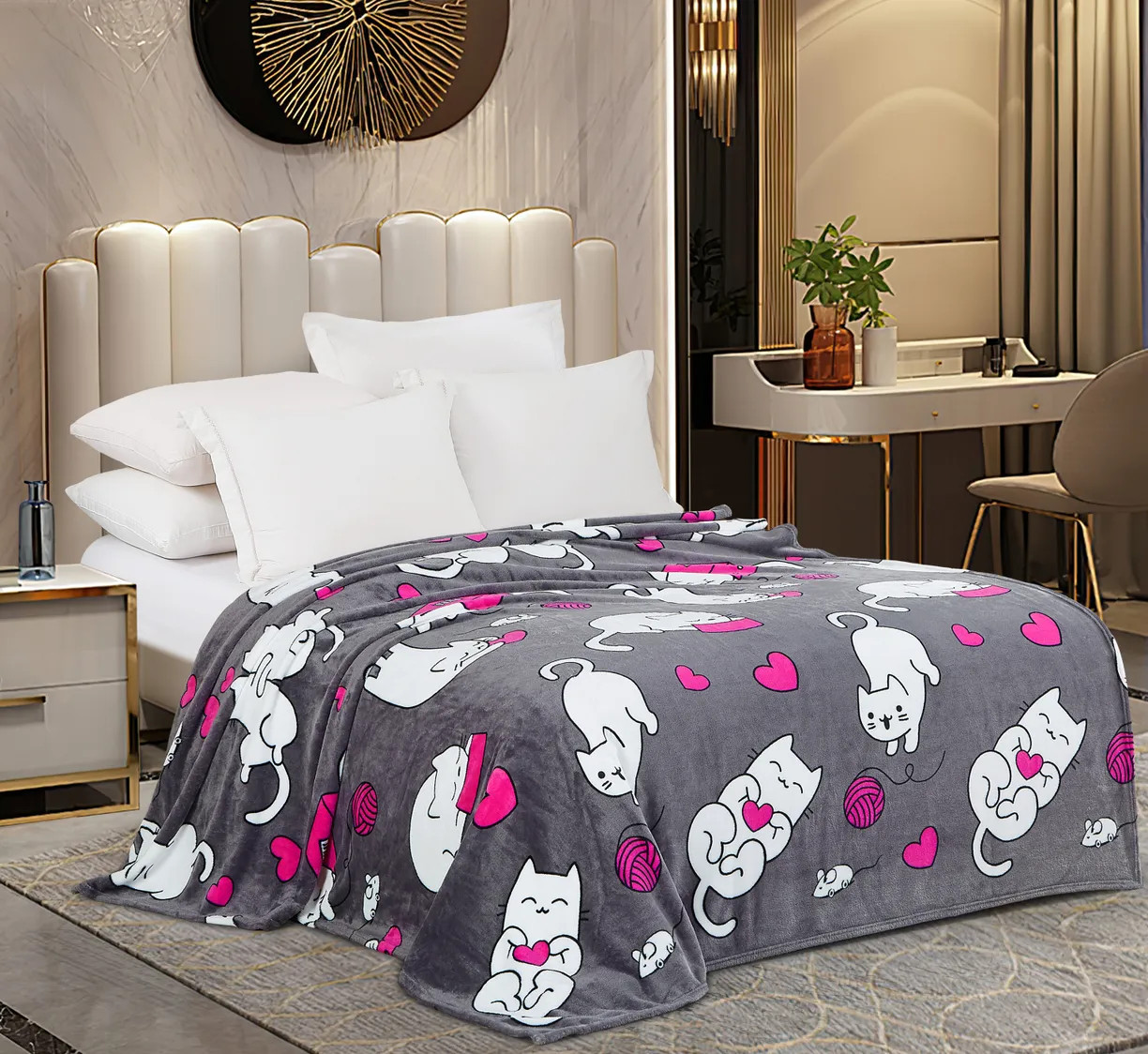Покрывало-плед трикотажное ворсовое «Котики в сердцах» | Pavline