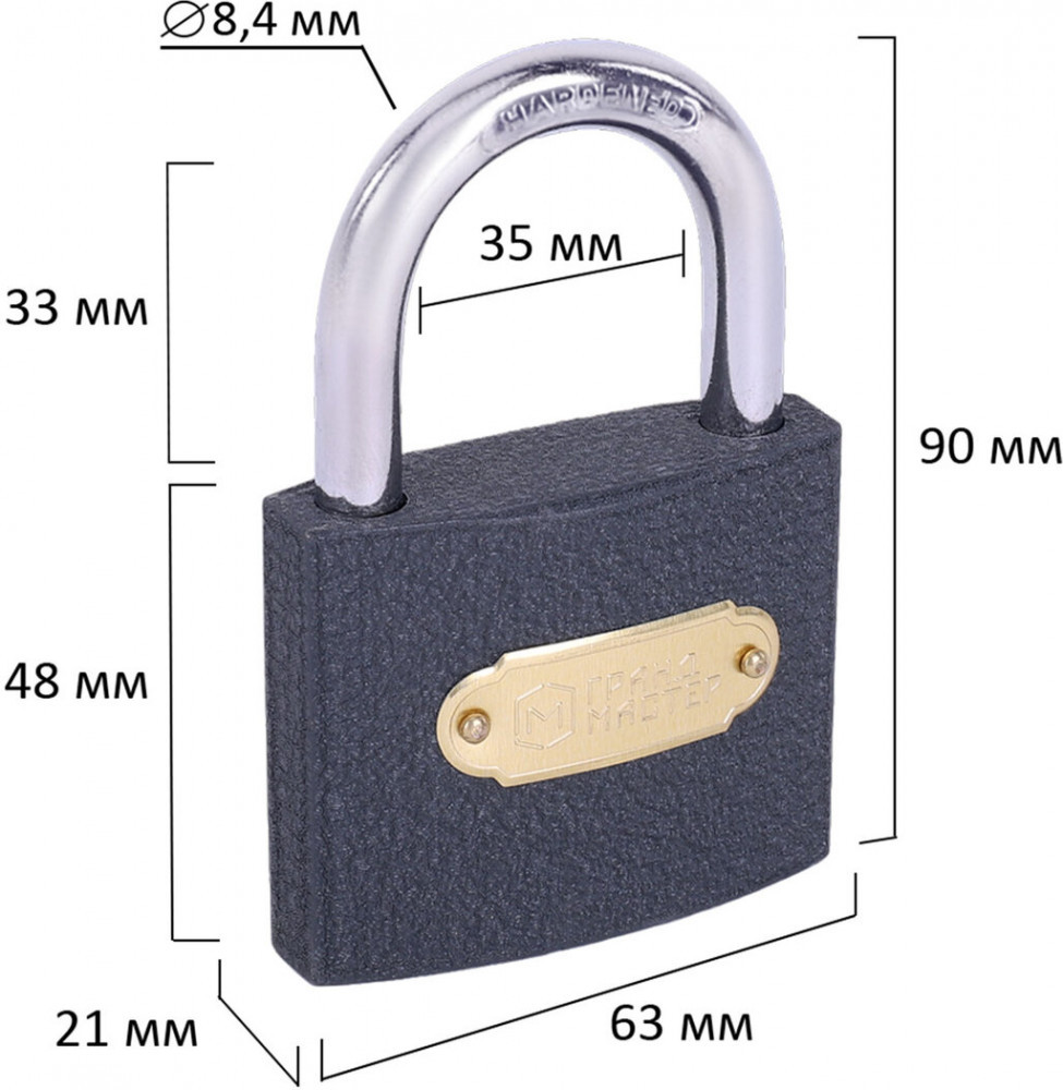 • размеры замка: ширина 63 мм, высота 90 мм, толщина 21 мм;