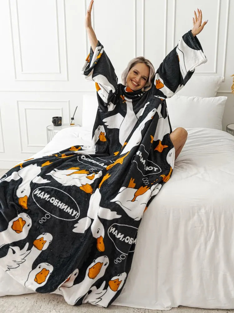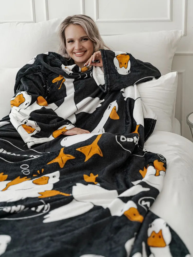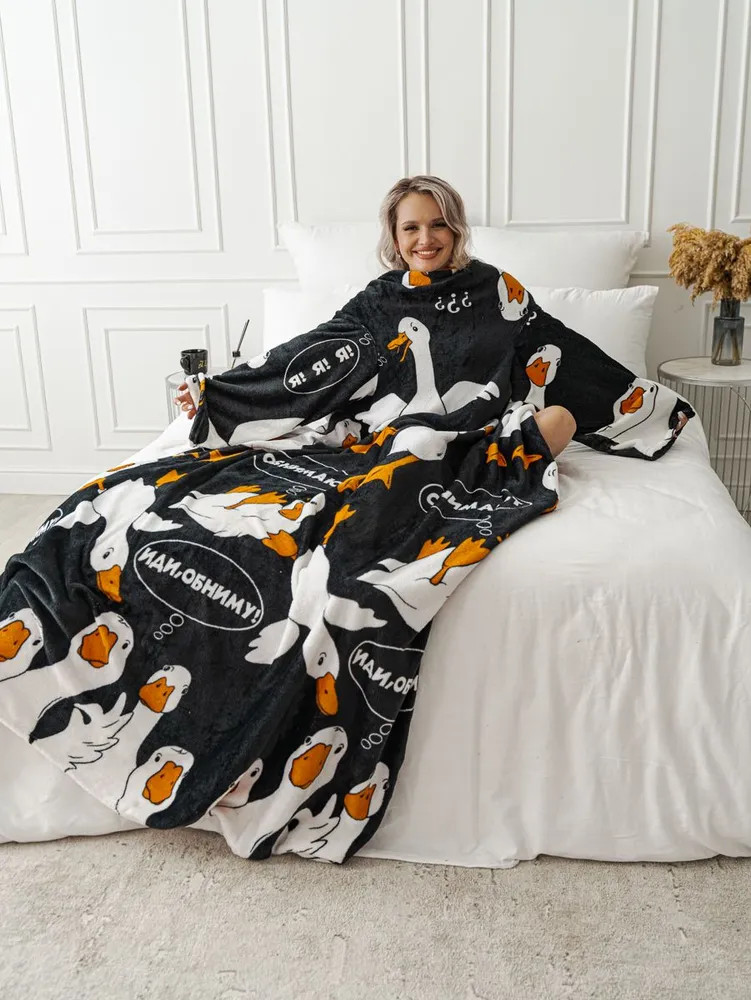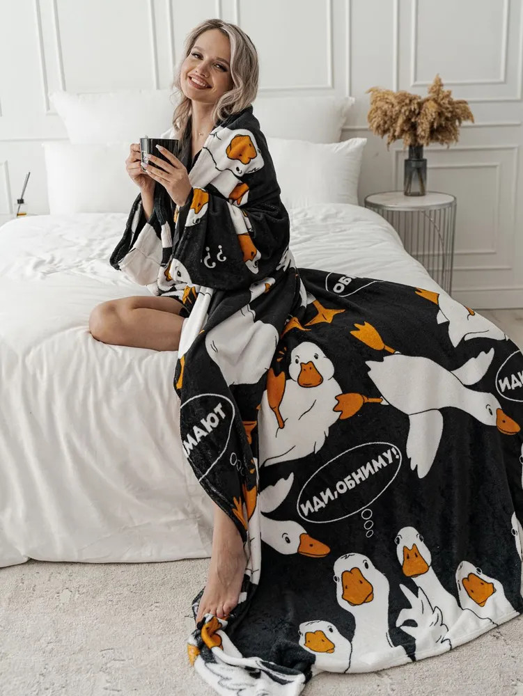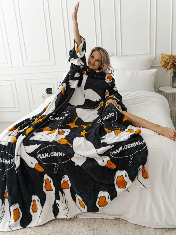 Плед с рукавами — это идеальное решение для тех, кто ценит комфорт и уют в своем доме. Этот многофункциональный аксессуар станет незаменимым спутником на холодные вечера, будь то на кровати, диване или даже кресле. Изготовленный из мягкого и уютного велсофта, плед обеспечивает приятные тактильные ощущения и надежно сохраняет тепло, позволяя вам почувствовать настоящее блаженство. Особое внимание заслуживает удобный дизайн с рукавами, который предоставляет свободу движения и позволяет заниматься любимыми делами — читать книгу, работать за ноутбуком или смотреть телевизор, не расставаясь с уютом. Размер пледа 150×200 см подходит для использования как покрывало на кровать или диван, обеспечивая гармоничное дополнение интерьера и создавая атмосферу уюта в любом помещении.