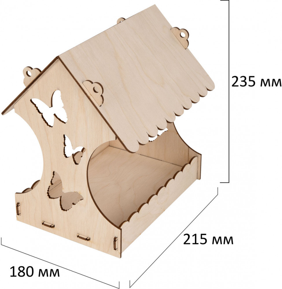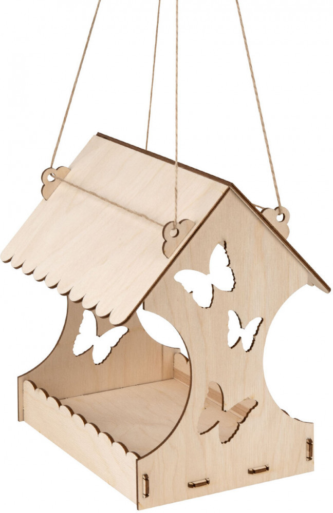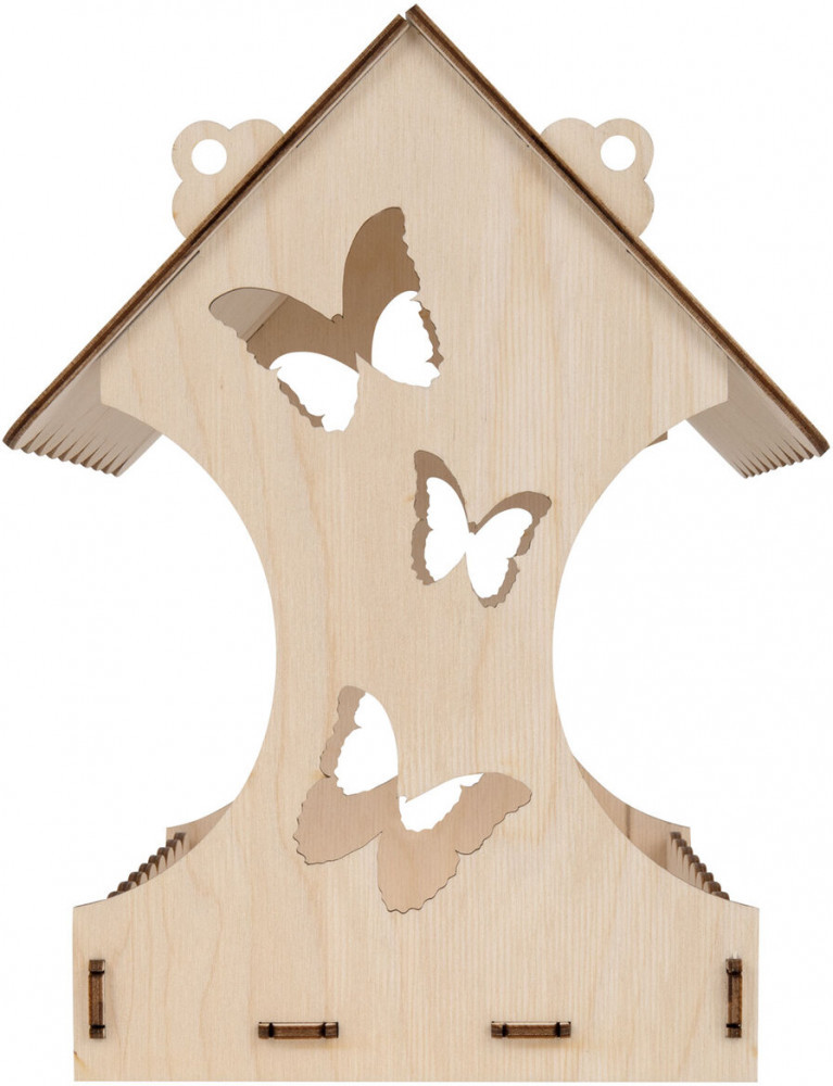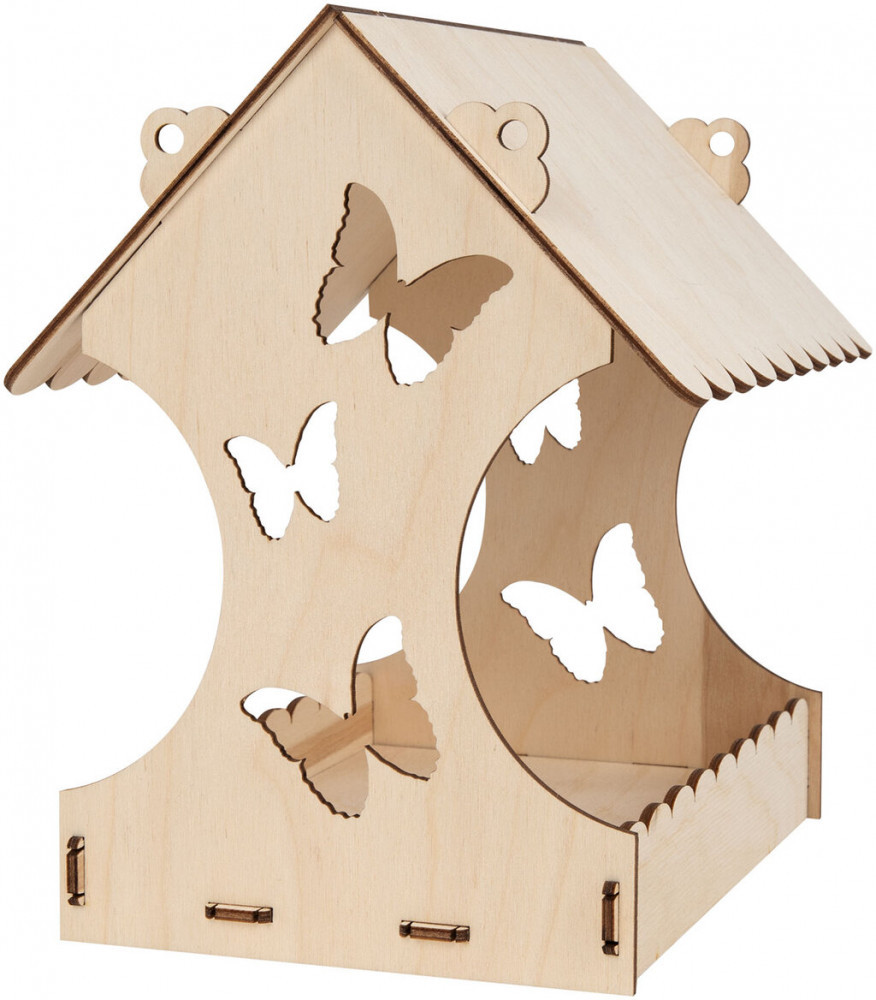 Конструктор-кормушка для птиц «Бабочки» поставляется в разобранном виде, возможна сборка без клея и молотка. Все детали выполнены из качественной, шлифованной фанеры. Готовое изделие можно раскрасить акриловыми и гуашевыми красками или покрыть лаком. |