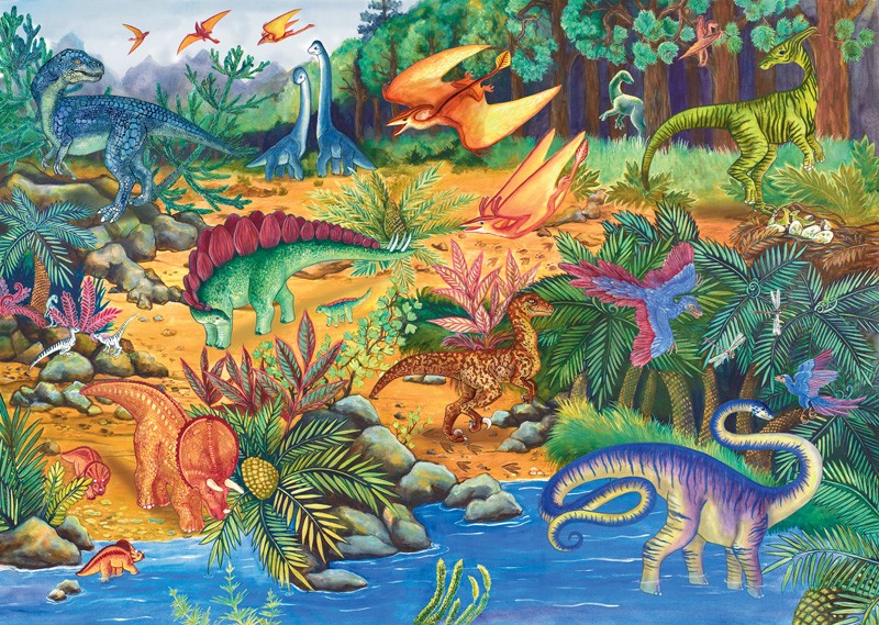 Ребёнок (3 года) большой поклонник динозавров, в восторге от этого пазла! Сделан из очень плотного картона, получается очень большая, яркая картина. Единственный минус - то, что скрепления частей не стандартно - некоторые детали не держатся на своих местах и легко смещаются, при малейшей прикосновении. Но ребёнка это сильно не смущает, особенно нравится ему играть потом с фигурками динозавров, которые являются частью пазла. Ещё приятным дополнением был маленький динозаврик (на ручке коробки), мы его отцепили, и с ним тоже играем.