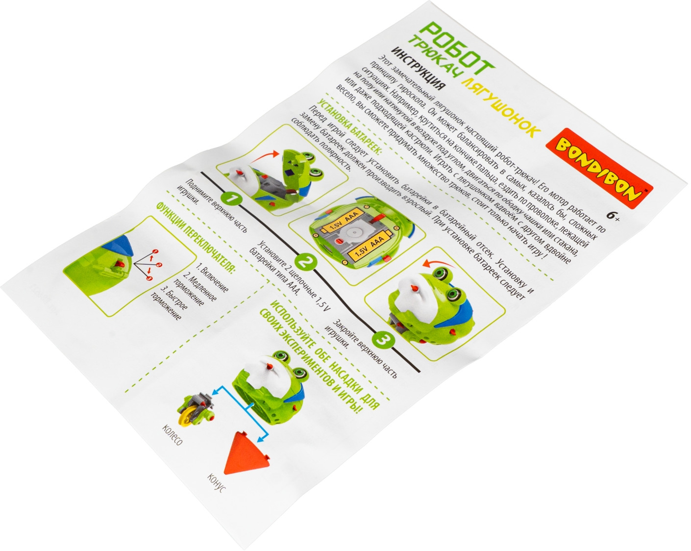 Что получится, если объединить любознательность ребёнка и возможности гироскопа? Весёлый и неугомонный робот-трюкач Лягушонок от Bondibon! Он не только развлекает, но и увлекает ребёнка в мир физики и экспериментов с движением. Научная игрушка способна вращаться на высокой скорости и удерживать равновесие на разных поверхностях, включая острие карандаша! В комплект входят две игровые насадки: колесо для трюков на проволоке и насадка-волчок, позволяющие менять стиль движения. Игрушка развивает координацию, воображение, мелкую моторику и мышление. Гироскоп поможет ребёнку понять простые принципы механики, тренирует ловкость и реакцию. Робот-трюкач — это не просто игрушка, а весёлый игровой эксперимент!