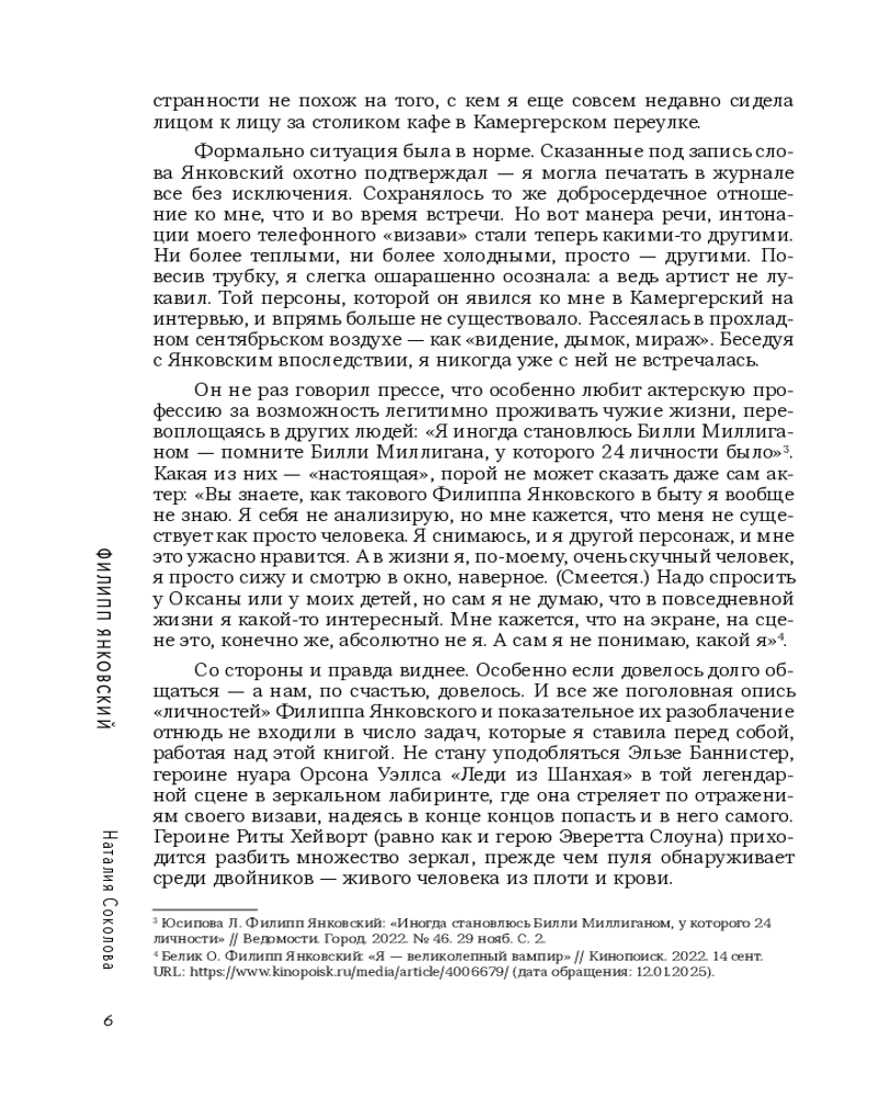 Серия: Кино в лицах. Биографии звезд российского кино и театра Наталия Соколова предлагает глубокий театроведческий взгляд на феномен Филиппа Янковского — одного из самых загадочных артистов российского кино и театра. Отказавшись от разоблачительного подхода, автор уважает право актера на тайну, фокусируясь на анализе его творческой методологии. Книга исследует уникальную двойственность натуры Янковского, его фирменное «динамическое молчание» и магистральную тему власти, пронизывающую его зрелые роли. |