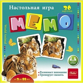 Супер мемо для малышей и не только. Можно не только играть как мемо, но и выучить (повторить) животных. В наборе 18 парных картинок, картинки из очень плотного картона, размер не большой (около 5-6 см). Изображения животных реалистичные, не сказочные.