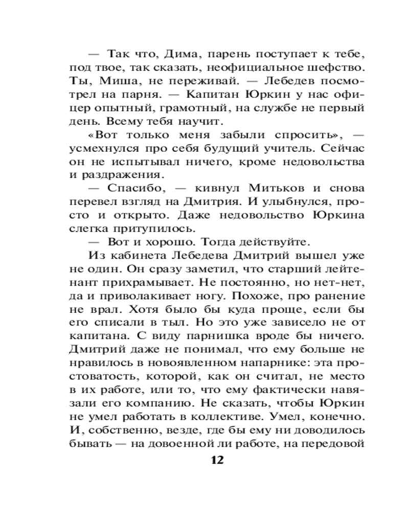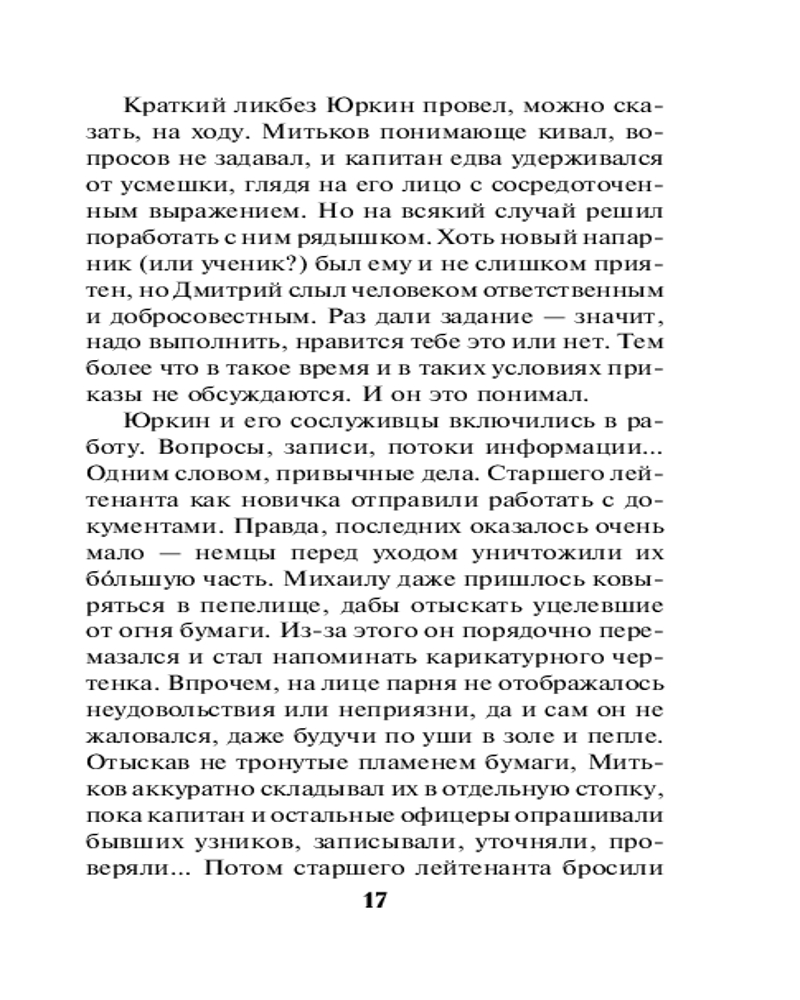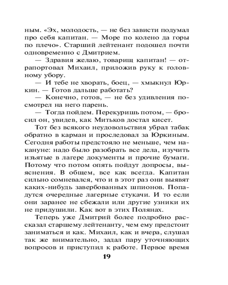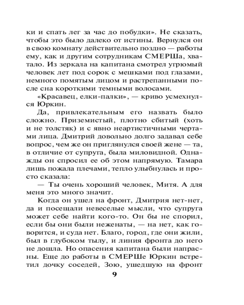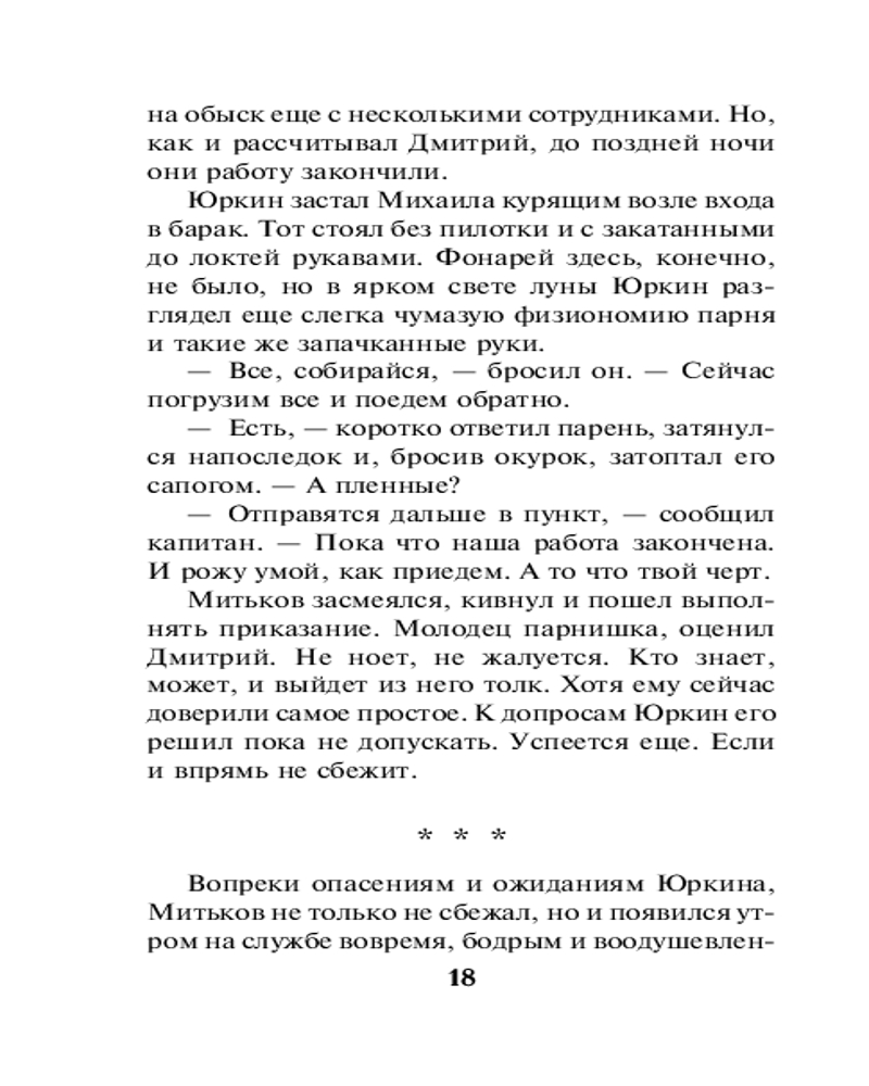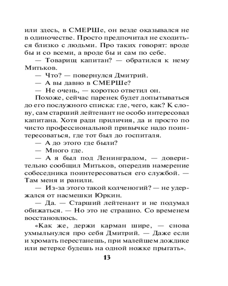 Капитан СМЕРШа Дмитрий Юркин, занимаясь фильтрацией советских военнопленных, освобожденных из концлагеря, обратил внимание на одного из бывших узников, красноармейца Павла Захарова. У бойца типичная легенда: попал к немцам без сознания, контактов с абвером не имел, в лагере вел себя тихо, ни во что не вмешивался... Именно эта «неприметность» и заинтересовала капитана. Что, если такое поведение — часть секретного плана, а сам пленный — не тот, за кого себя выдает... Юркин решает применить к Захарову особый подход и неожиданно получает такие откровения, от которых оперативнику становится не по себе...